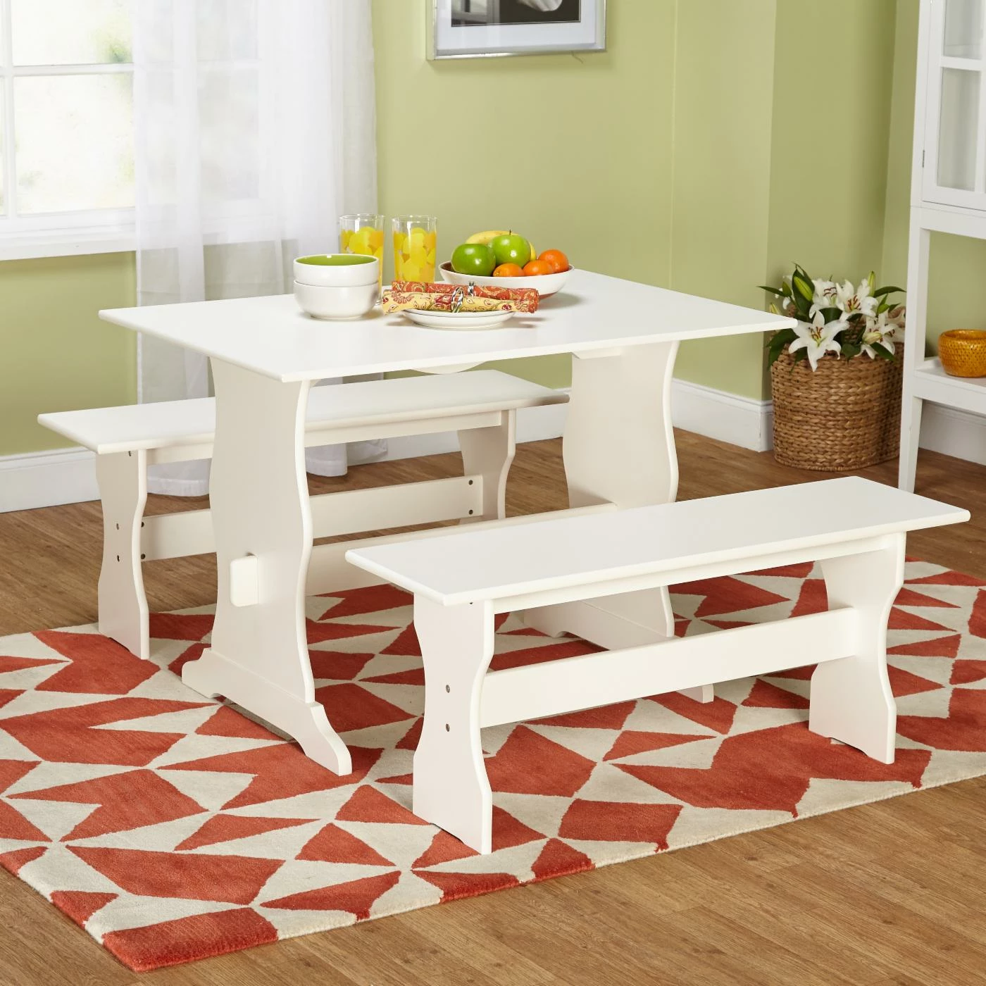 Pieces are crafted of engineered wood, and they’re available in your choice of finish. Slightly wavy sides add even more charm, and the benches fit snugly under the table when not in use. Ideal for breakfast nooks, small apartments, and more.