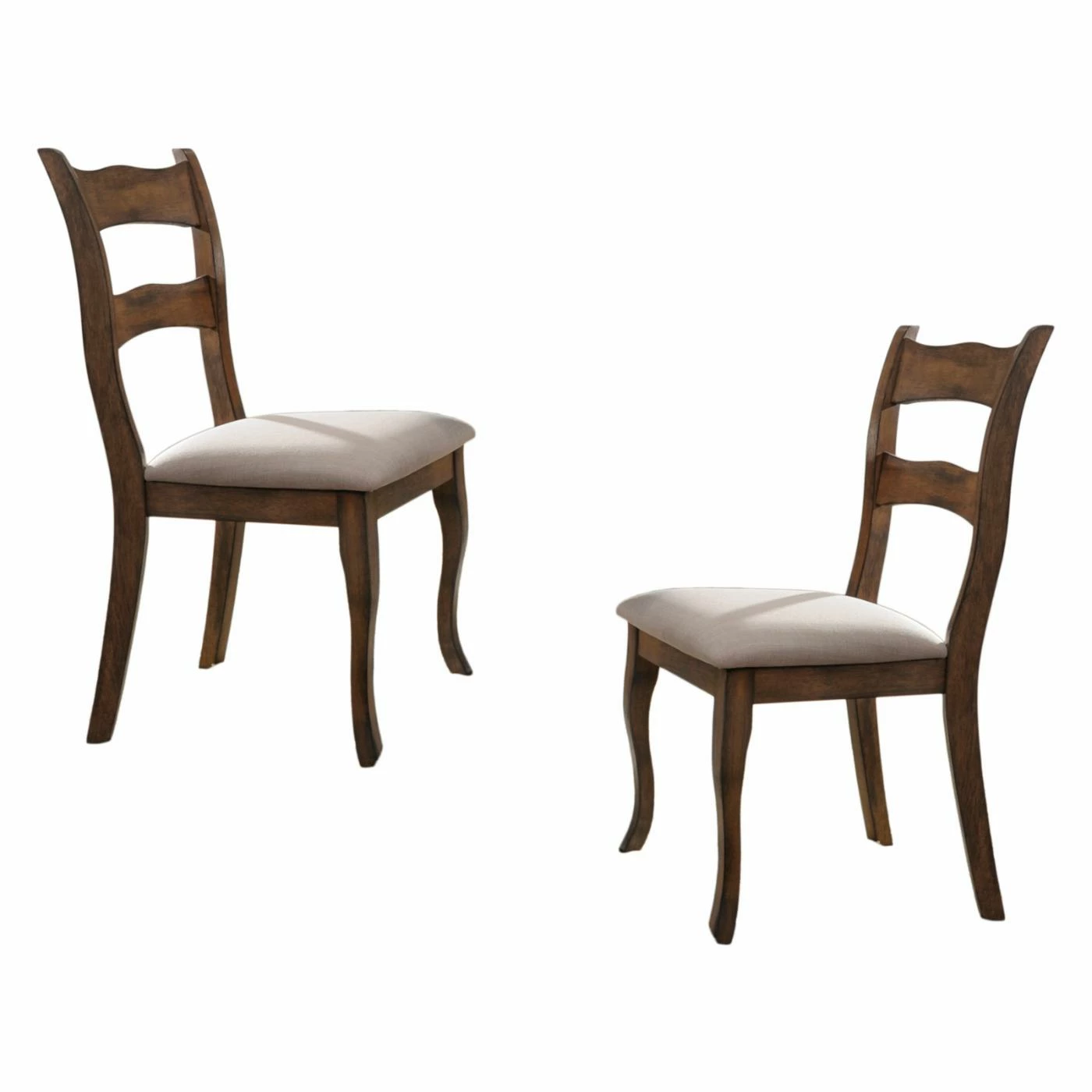 The understated charm of the Best Master Furniture Alice Round 5 Piece Dining Set is ready to provide you with a versatile design that you can enjoy all day, every day. This set includes four chairs around a circular table. Each piece is crafted from a mix of solid and engineered hardwood with the available finish of your choice. The table features a lathe-turned, pedestal-style base that stands on four curved feet. Each chair shows off subtle curves with a ladder-style backrest. A thick pad of foam covers the seat with an exterior of fabric upholstery.