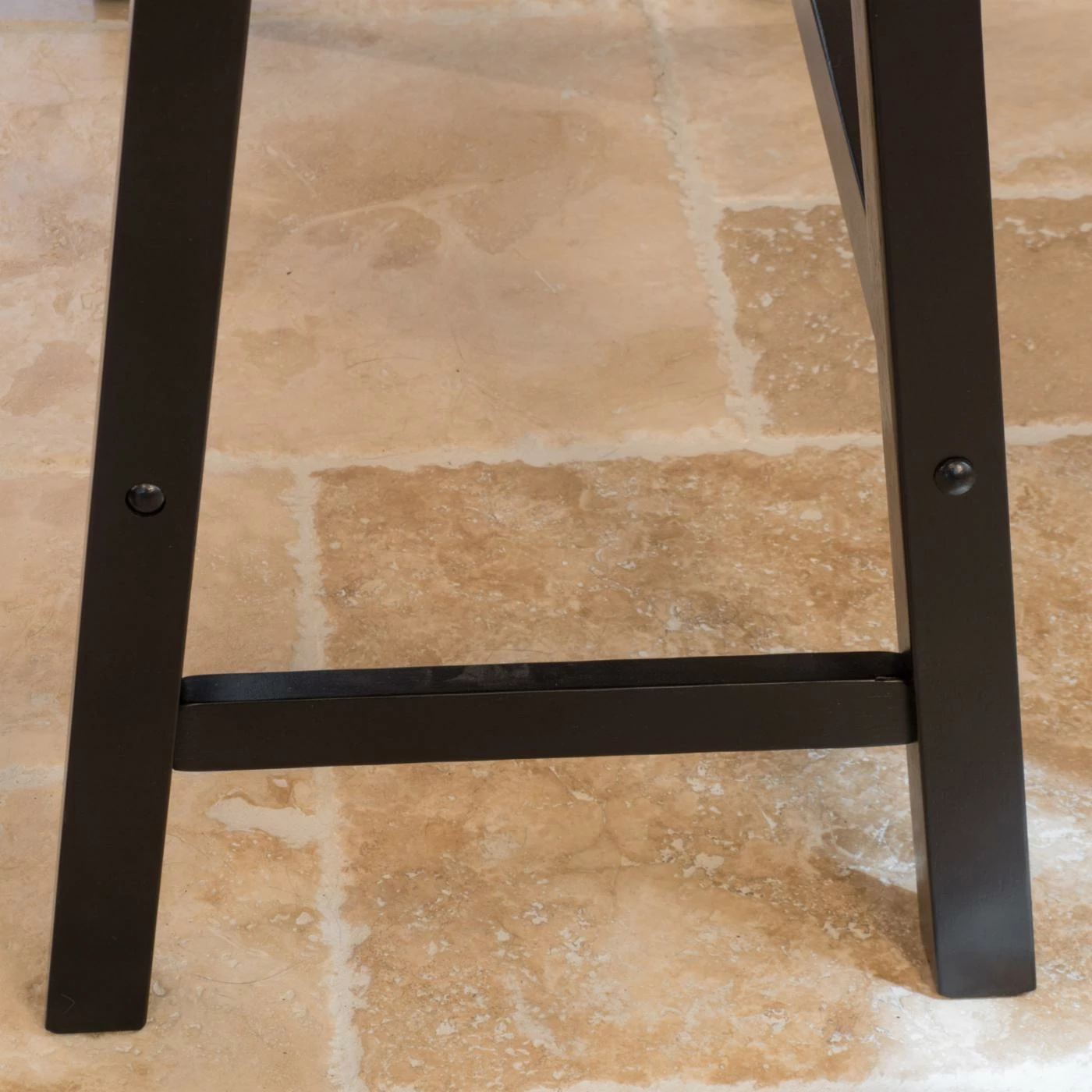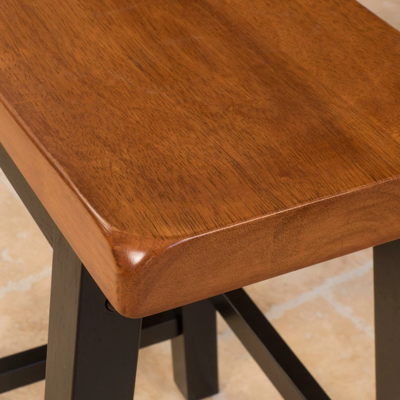 Add counter space to your world with the Rockchuck 4 Piece Rectangular Dining Table Set. This two-tone dining set features two backless counter-height stools, a counter-height bench, and a gorgeous table sized to suit its seating pieces. Any and all items of the set can be repurposed as plant stands, tall end tables, nightstands, and so forth, making this an incredibly versatile dining set. Two-tone finishing in black and mahogany wakes up your dรฉcor.