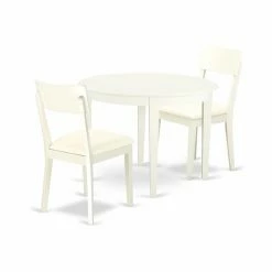 Complete your minimalist kitchen or dining room with the East West Furniture Boston BOAD3 Three Piece Round Dining Table Set. The set includes a round dining table and two ergonomic chairs with tapered, square legs. Solid hardwood construction gives each piece the ability to withstand the effects of daily use. Padded faux leather-upholstered seats let you dine comfortably and are easy to wipe clean after use.