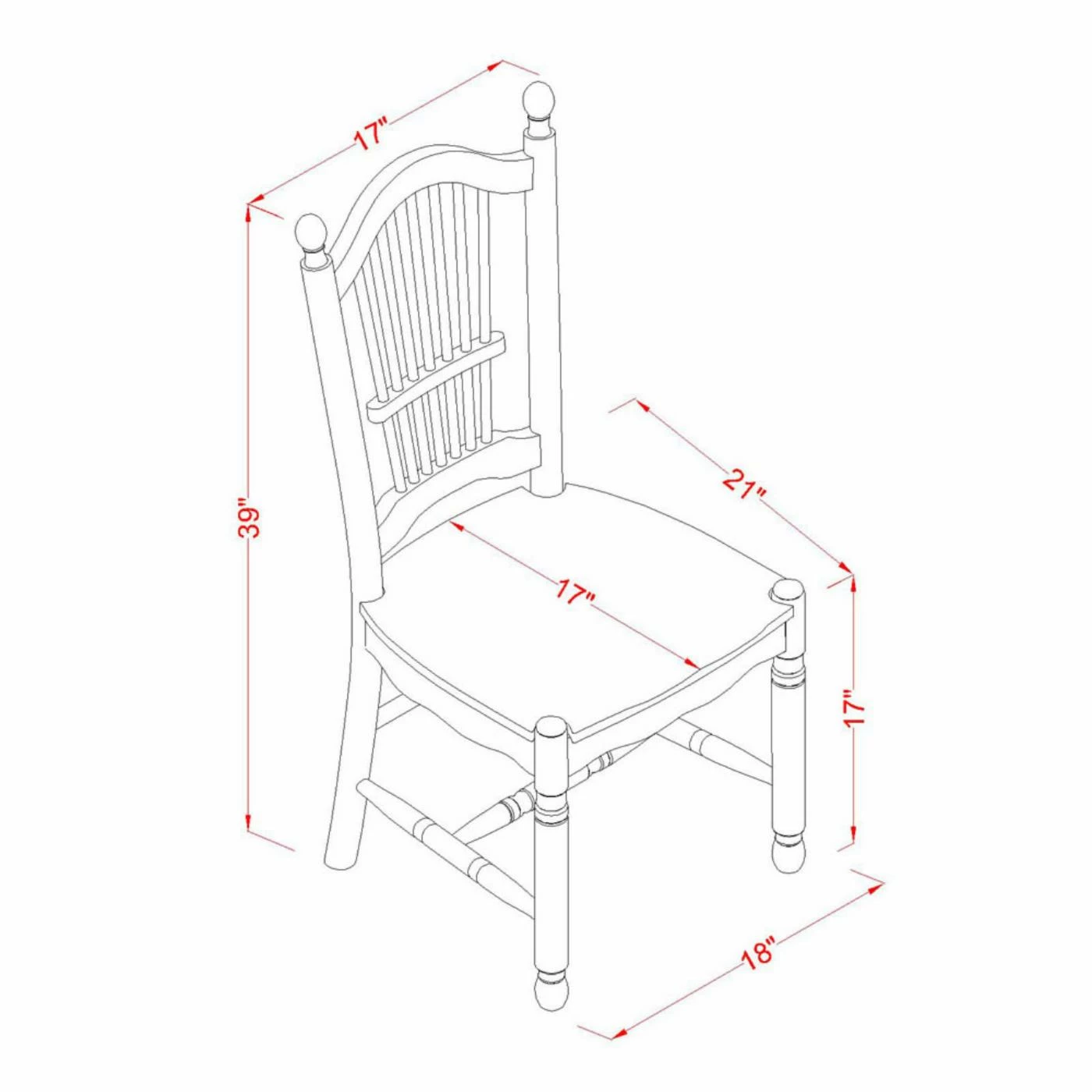 - Chair dimensions (ea.): 17.5L x 18.5W x 39.5H in.