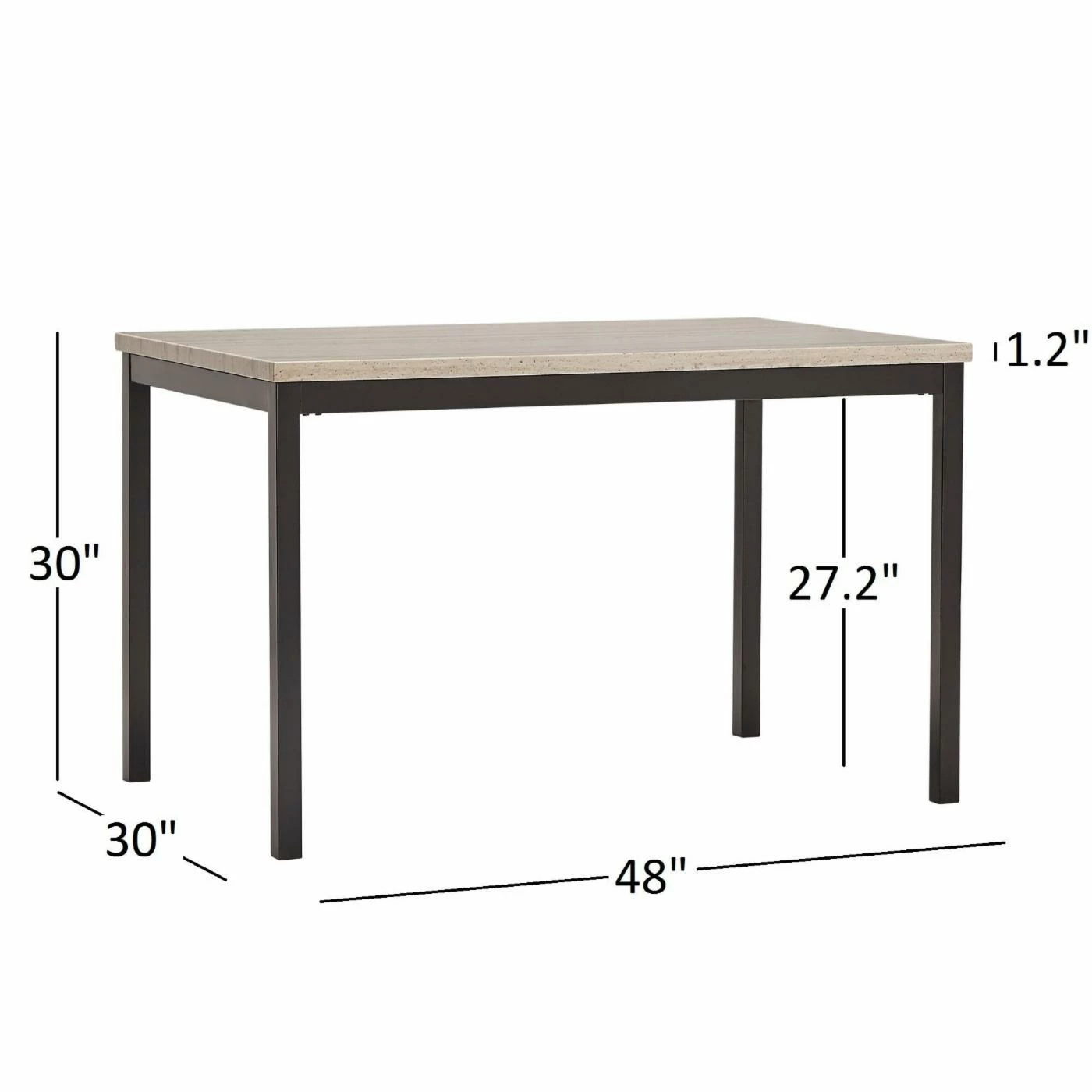 - Table: 48L x 30W x 30H in.