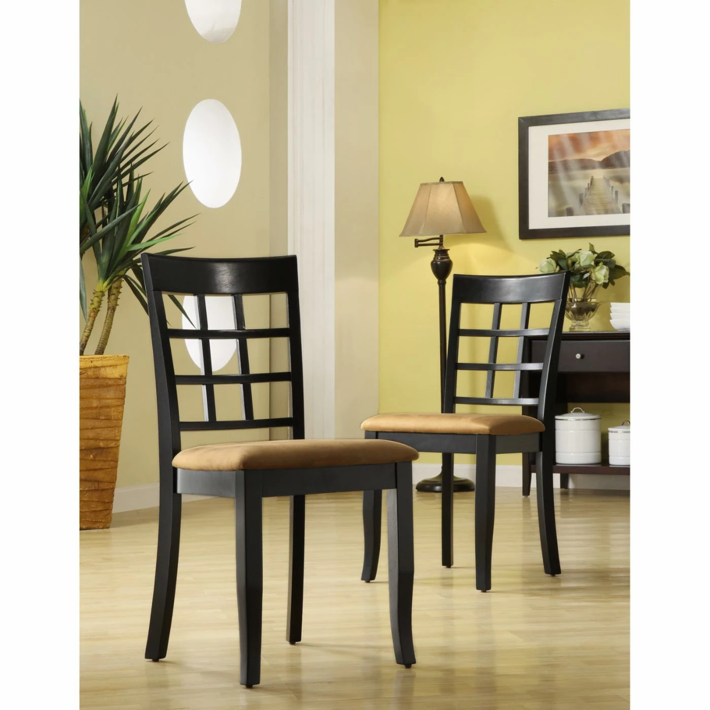 Add some fancy to the family feasts with the HomeleganceΒ Tibalt 7 pc. Rectangle Black Dining Table Set – 60 in. with 6 Window Back Chairs. Perfect for big families or big groups of friends, this dining set comes complete with a rectangular dining table and six dining side chairs. Itβs crafted of solid rubberwood and finished in a black thatβs beautiful in any setting. The chairs have a window-back design thatβs both elegant and light-hearted, while the cream-colored microfiber upholstery creates both color contrast and a generous portion of cozy. Tapered legs on both chairs and table create a fresh, fashionable vibe. Some assembly is required.