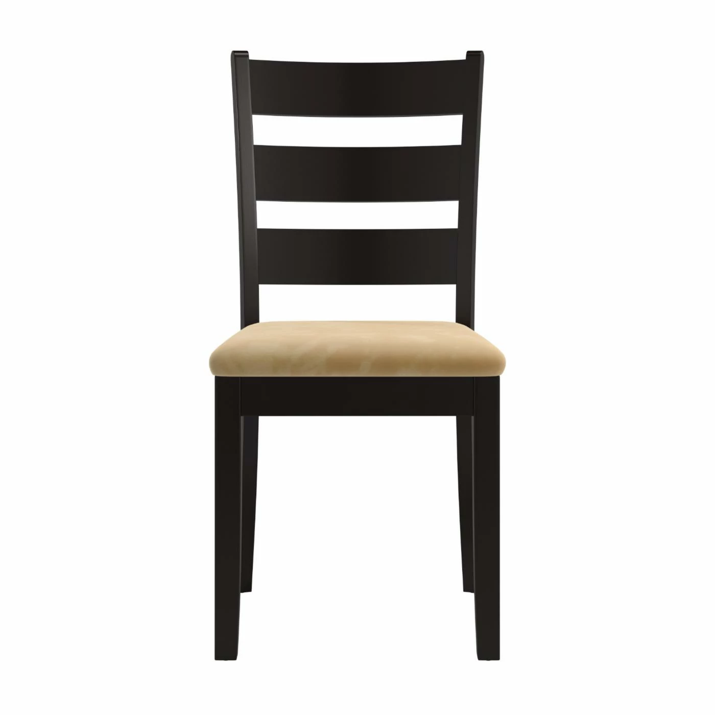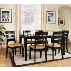 If you’ve got a big family or love to welcome big groups of guests, think big with the Tibalt 7 pc. Rectangle Black Dining Table Set – 60 in. with 6 Ladder Back Chairs. An all-in-one set, this dining table package includes one rectangular table and six dining side chairs. They’re crafted of solid rubberwood and finished in a deep, dark black that’s right at home in darker decors. A ladder-back design on the chairs adds a little elegance, while the seat lets you get comfy – thanks to soft, cream-colored microfiber upholstery. Tapered legs on both table and chairs create a clean silhouette that’s brimming with sophistication. Some assembly will be required.