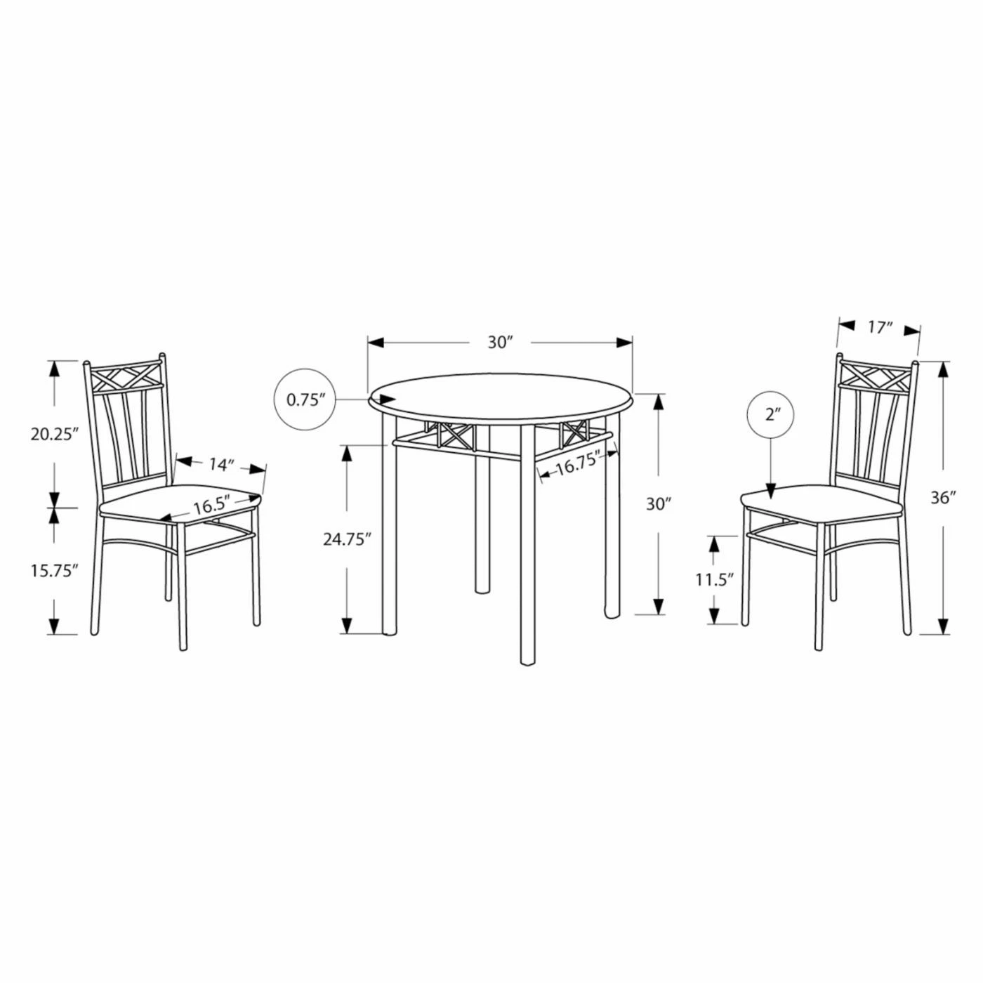 No large dining space, no problem – the Monarch Specialties Fairfax 3 Piece Round Dining Table Set is specially designed to turn that compact corner of your kitchen or studio apartment into a charming dining area. With a chic simplicity, this set comes complete with a table and two coordinating chairs.