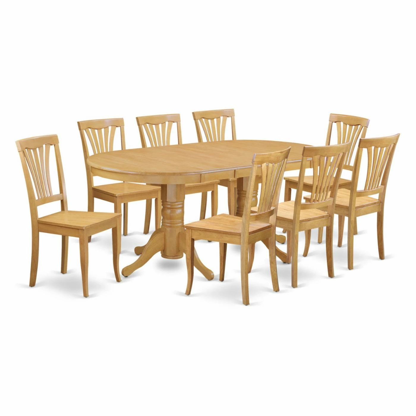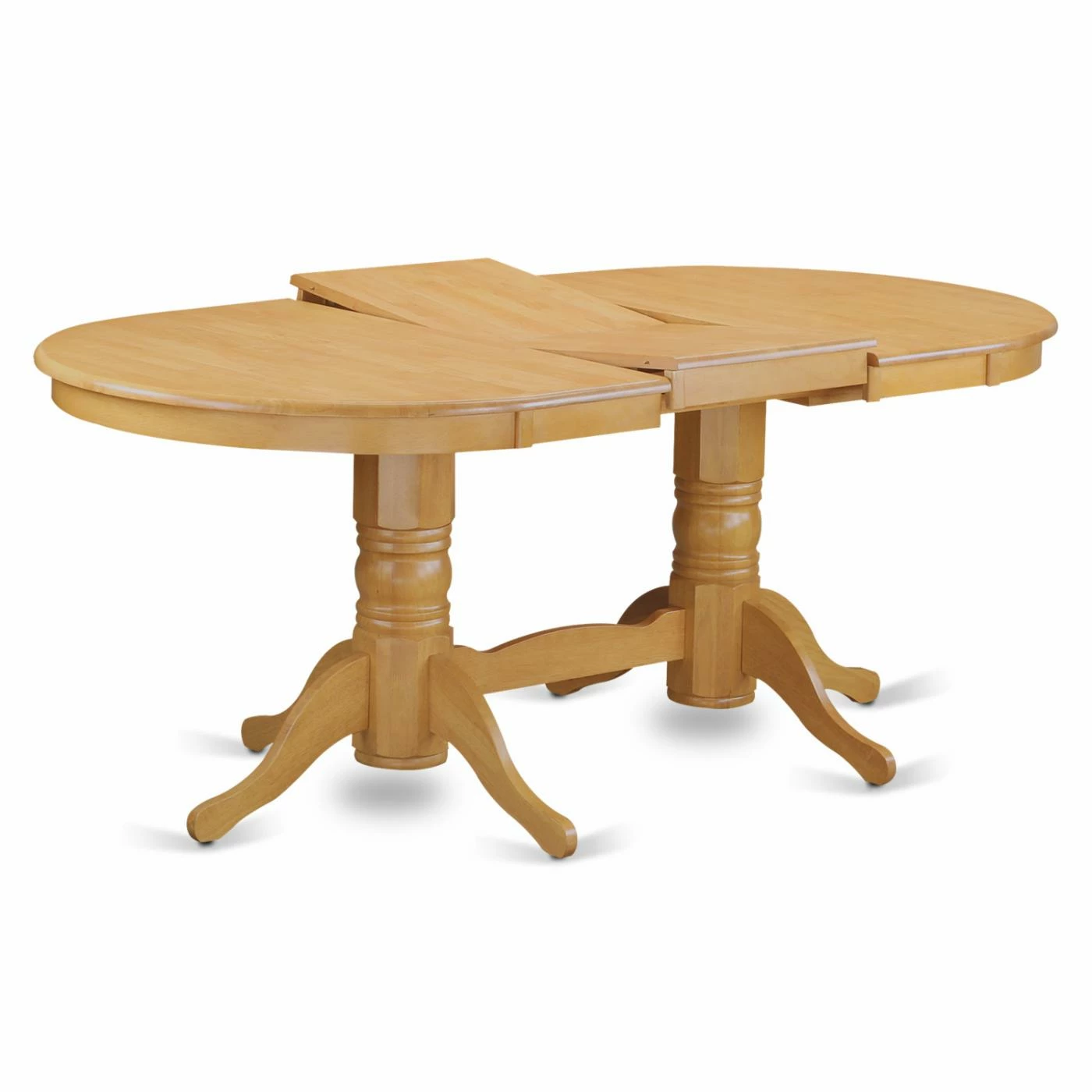 Whatever your meal plans for the week, the East West Furniture Vancouver 9 Piece Lath Back Dining Table Set makes them extra inviting. Lath-style chair backs set a stylish scene that’s ideal for transitional and modern décors, while the oval-shaped table has a double pedestal base and 17-inch butterfly extension leaf that stores right under the tabletop when not in use. You’ll get to choose from available seat types, and all pieces in this dining set are crafted of 100% Asian hardwood using no MDF, laminate, or fiberboard for superior durability.