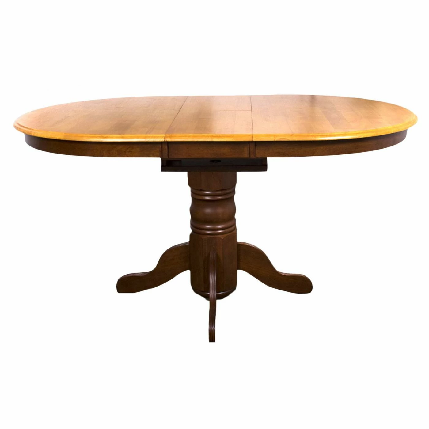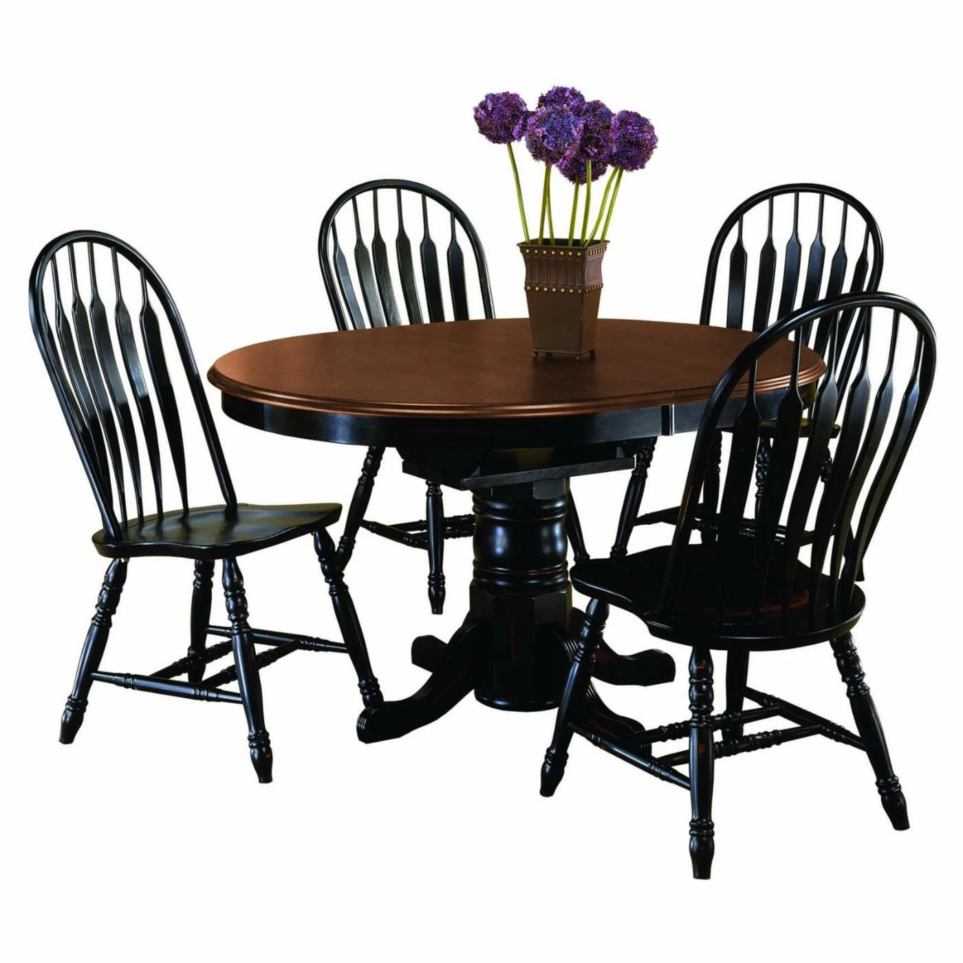 The Sunset Trading 5-Piece Pedestal Dining Set with Comfort Back Chairs features a classic design to showcase your favorite dishes and entertain friends and loved ones at dinner parties and cozy evenings in. A red cherry finish enhances the antiqued black look of this refined yet comfortable set.