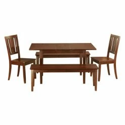 Coupon ✨ Rectangle East West Furniture Norfolk 5 Piece Scotch Art Dining Table Set With 2 Benches 🔔