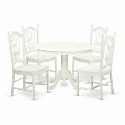 Flash Sale 👍 Round East West Furniture Hartland 5 Piece Sheaf Back Dining Table Set 🌟