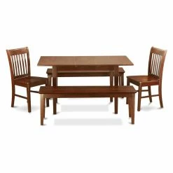 Top 10 🎉 Rectangle East West Furniture Norfolk 5 Piece Slat Back Dining Table Set With 2 Benches 💯