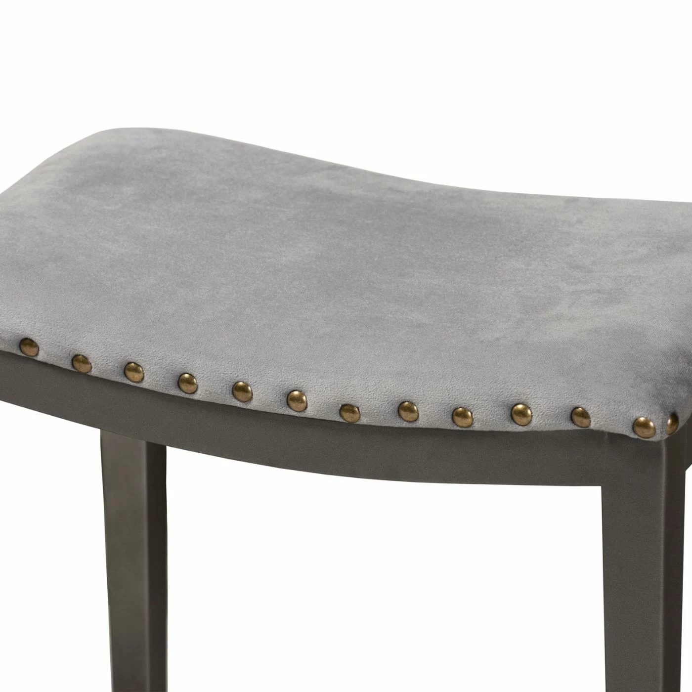 - Stools constructed of gray metal with foam padding and gray polyester upholstery