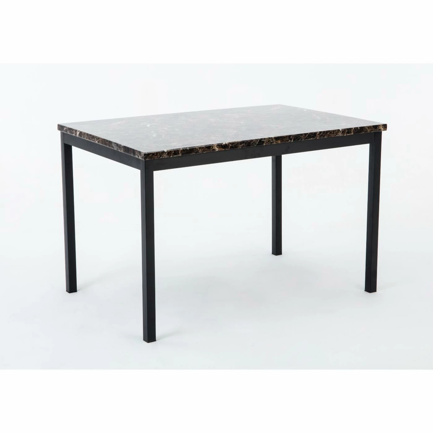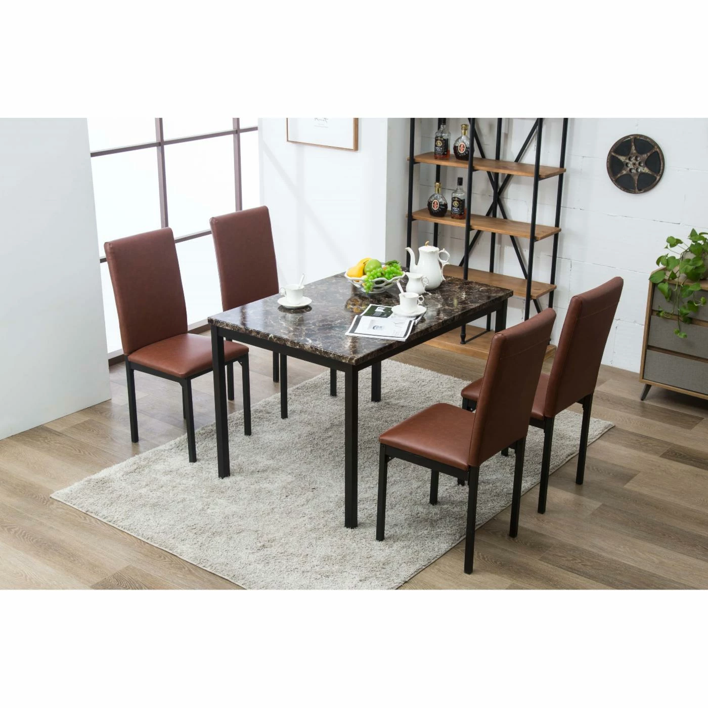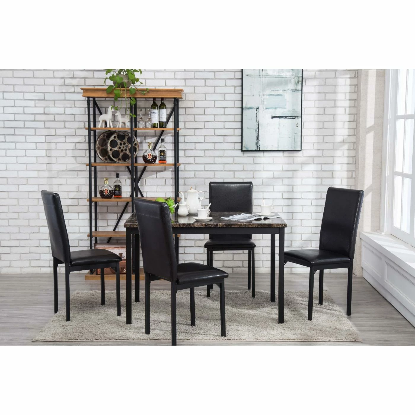 Enhance your modern dining room with the refined styling of the Boraam Arjen 5 Piece Dining Table Set. The faux marble top and black-finished frame turns any meal into a fine dining experience. The contemporary parsons chairs boast rich faux leather upholstery offered in your choice of available colors. It’s the ideal addition to contemporary, urban, or modern styled homes and is sure to become the focal point of the room.
