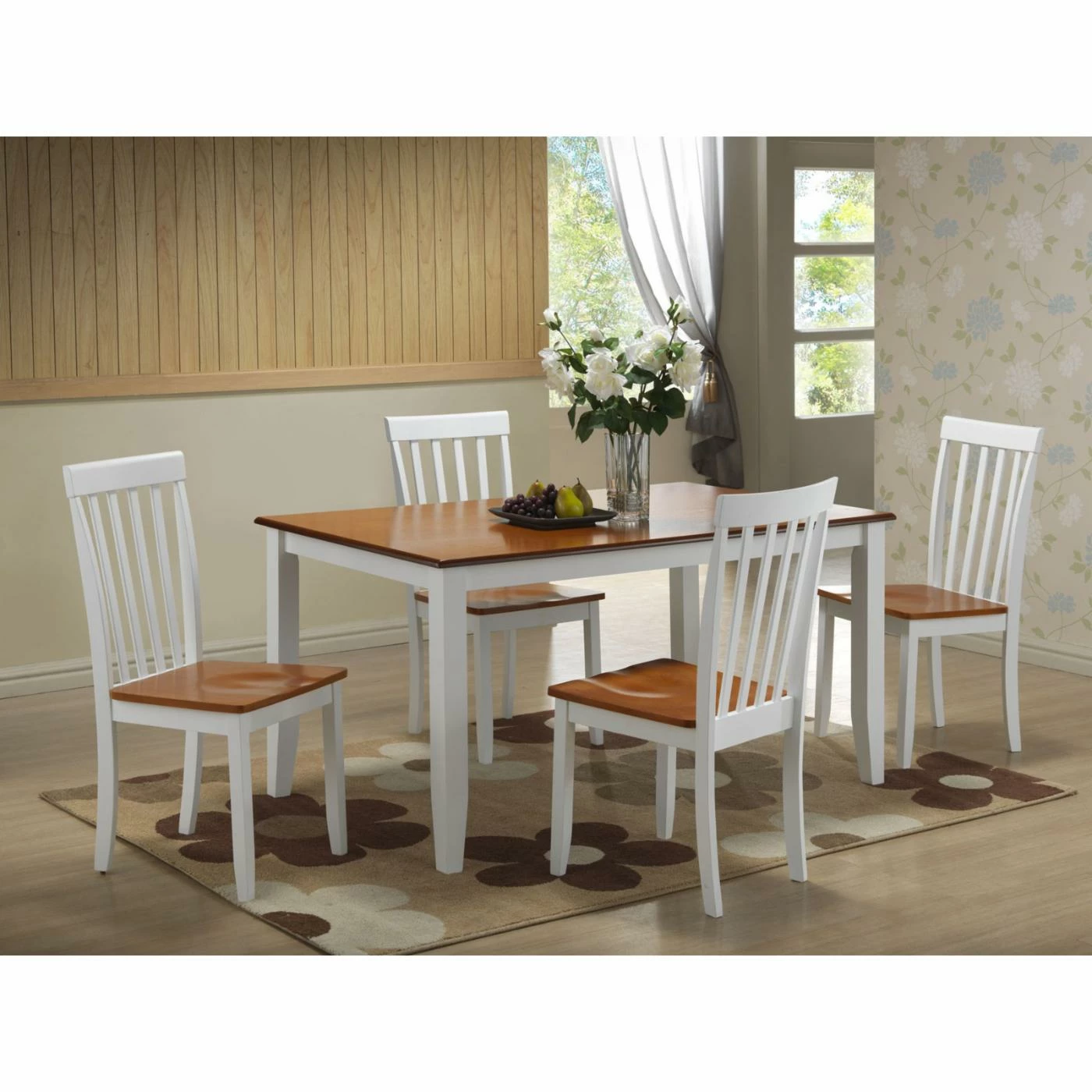 The Boraam Bloomington 5 Piece Dining Set – White & Honey Oak gives any dining space a stylish, comfortable appeal. This set includes a table and 4 comfortable chairs, each made of solid wood. A contrasting white and honey oak finish adds a touch of country charm.