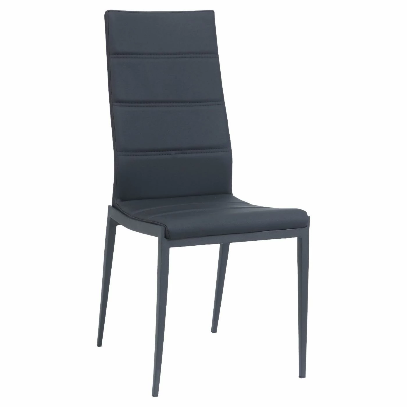 - Black faux leather upholstery and steel chairs