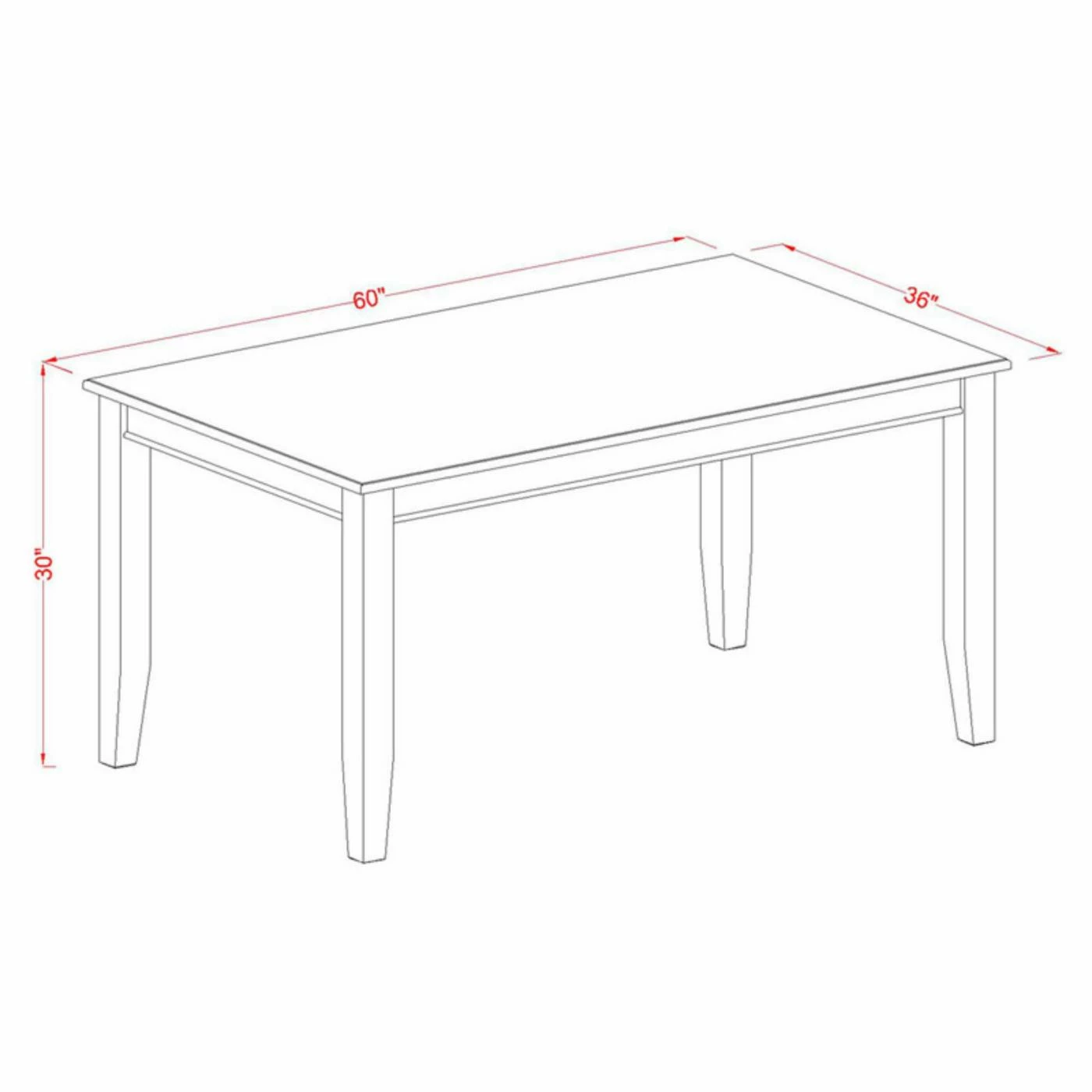 - Table dimensions: 60L x 36W x 30H in.