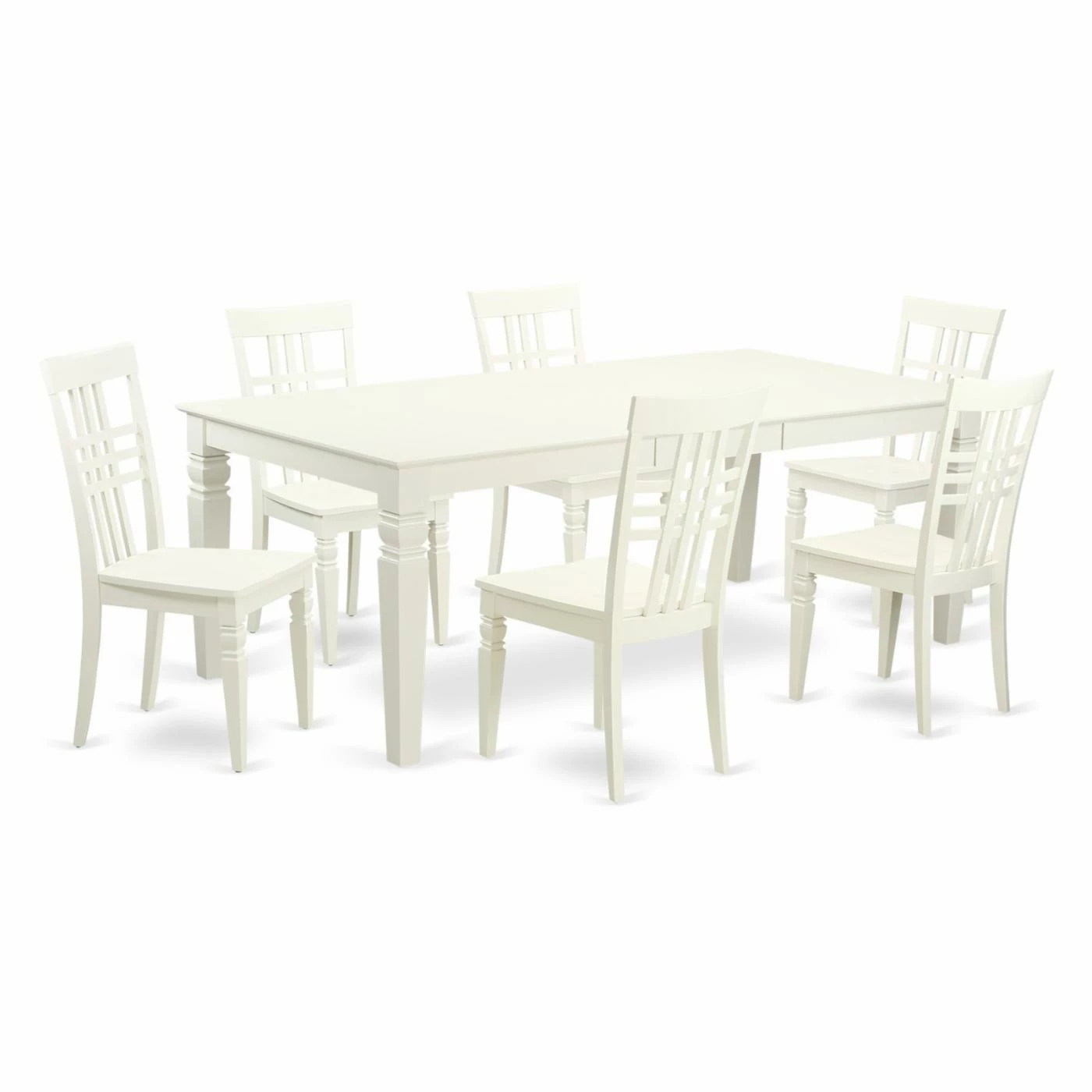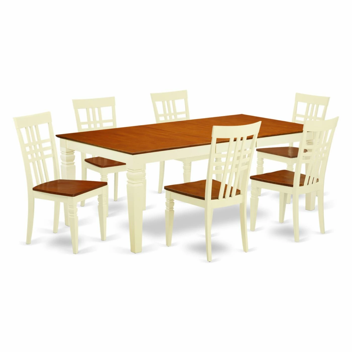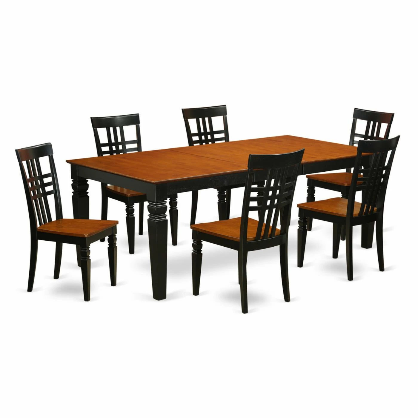 The East West Furniture Logan 7 Piece Latticeback Dining Table Set gives you the classic feel of Mission-style furniture, but with an accessible and versatile design that’s all about using that style to meet your ever-changing needs. This set includes six chairs gathered around a wide, rectangular table. Each piece is built to last, thanks to the solid rubberwood construction. The table stands on thick, block-style legs with detail carvings at the top and a bold taper at the bottom. The chair legs echo this style while offering the comfort of contoured seats and a curved, lattice-style back. The tabletop can be pulled apart to reveal a butterfly extension leaf that adds 18 inches to the length of the table. You’ve got multiple finish options to choose from, so take a look and see which one is going to work best in your space.