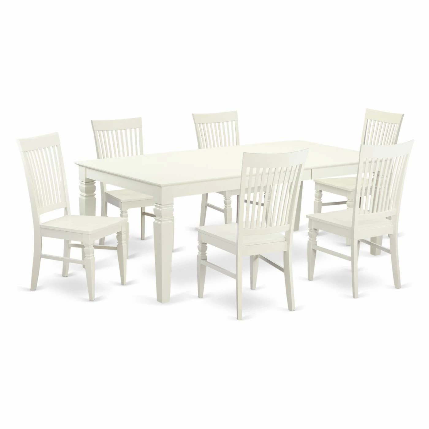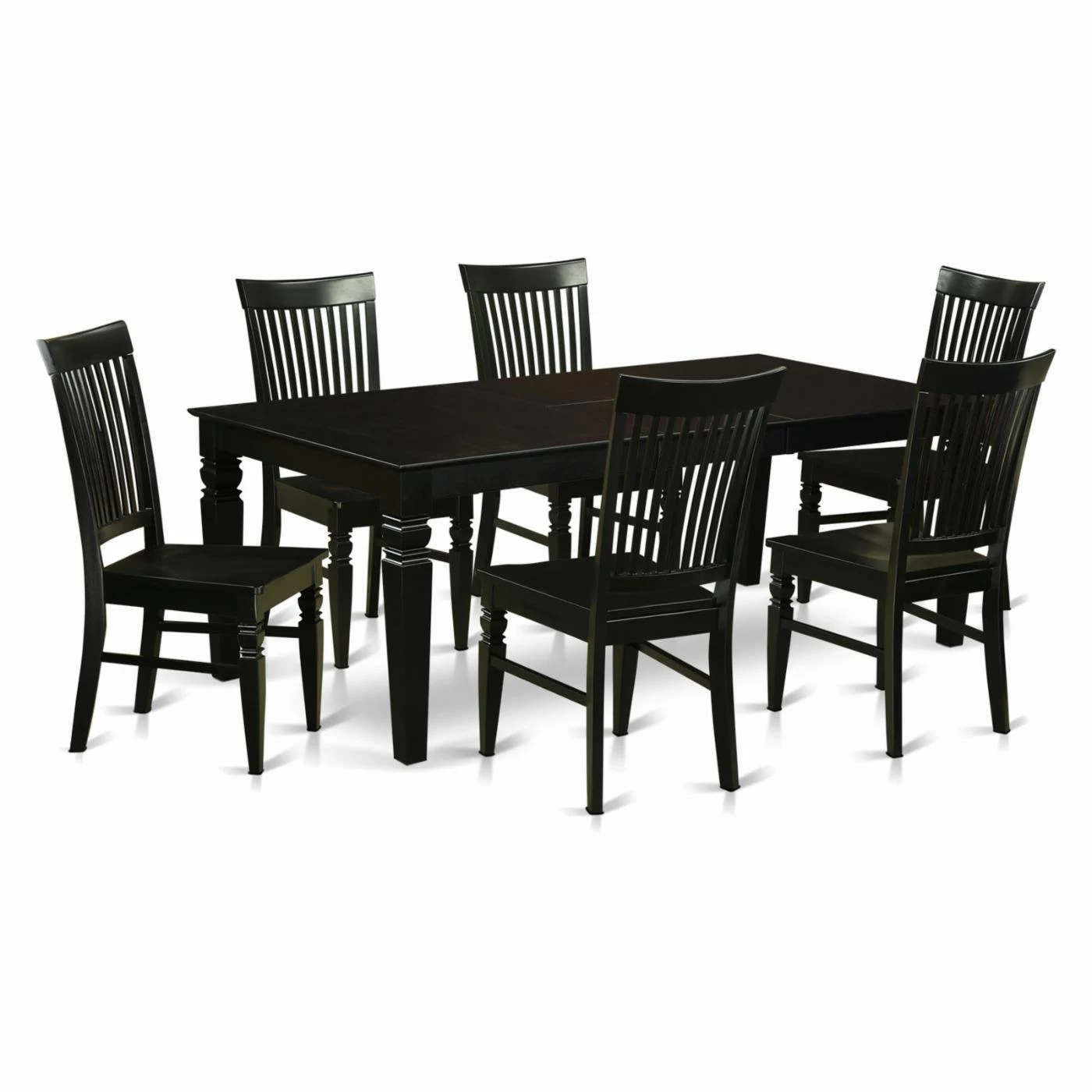 You can upgrade each meal by adding sun-dried tomatoes to every dish you cook, or you can make a significant change for the better and add the East West Furniture Logan 7 Piece Thin Slat Dining Table Set to your dining room. This set includes a rectangular table that’s surrounded by six matching chairs. Each piece in this set is made from solid rubberwood that’s offered in a variety of high-shine finishes. The rectangular table stands on thick, block-style legs that show off carved details up top and a dramatic taper near the floor. Each chair offers a contoured seat with a tall, curved back appointed with thin, vertical slats. When you need a bit more table space, you can use the butterfly extension leaf that’s stored beneath the tabletop. This leaf pops out easily and adds almost 18 inches to the length of the table.