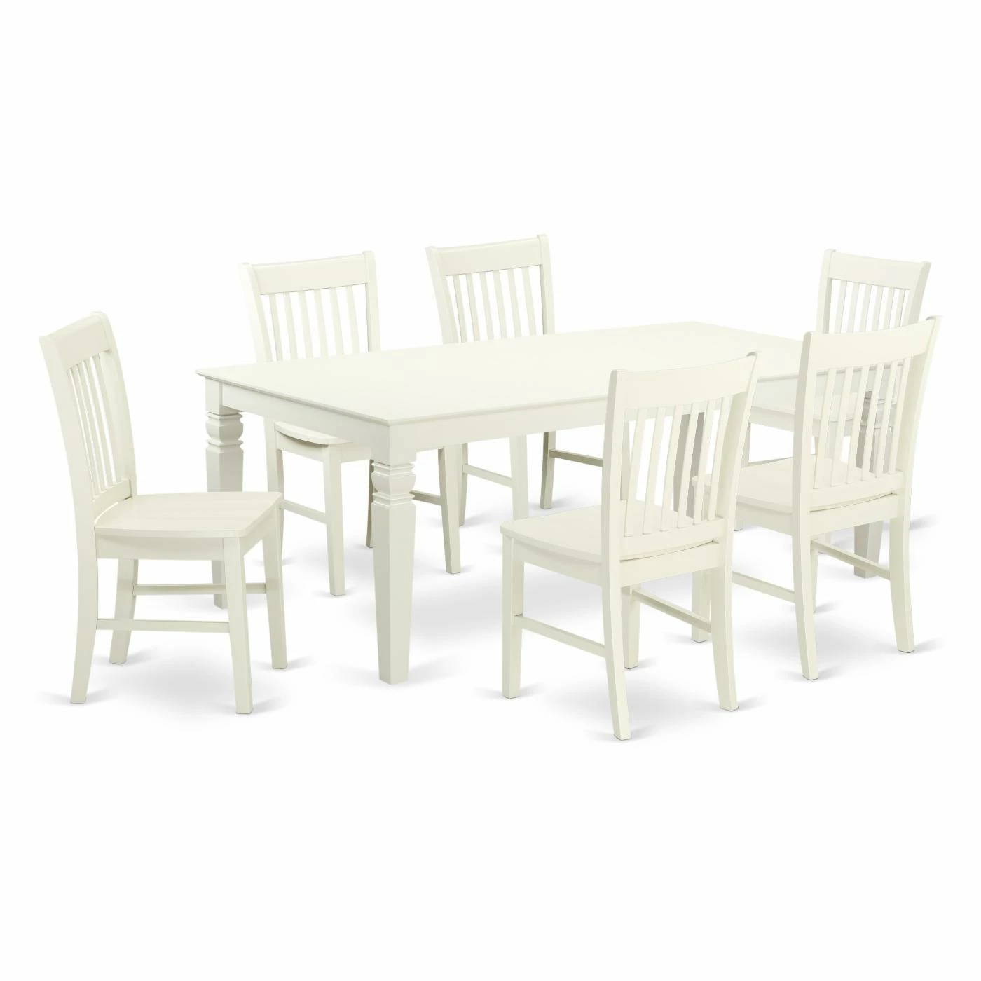 Even if your dinner guests are unexpected, you’ll be ready to serve them in a flash with the East West Furniture Logan LGNO7 Seven Piece Extension Dining Table Set. The dining table quickly expands 18 inches with the help of a self-storing extension leaf. Six slat back chairs with ergonomically contoured seats ensure that everyone is comfortable during meals. Fabricated out of solid hardwood, the set can be enjoyed for years to come in your dining room or kitchen.
