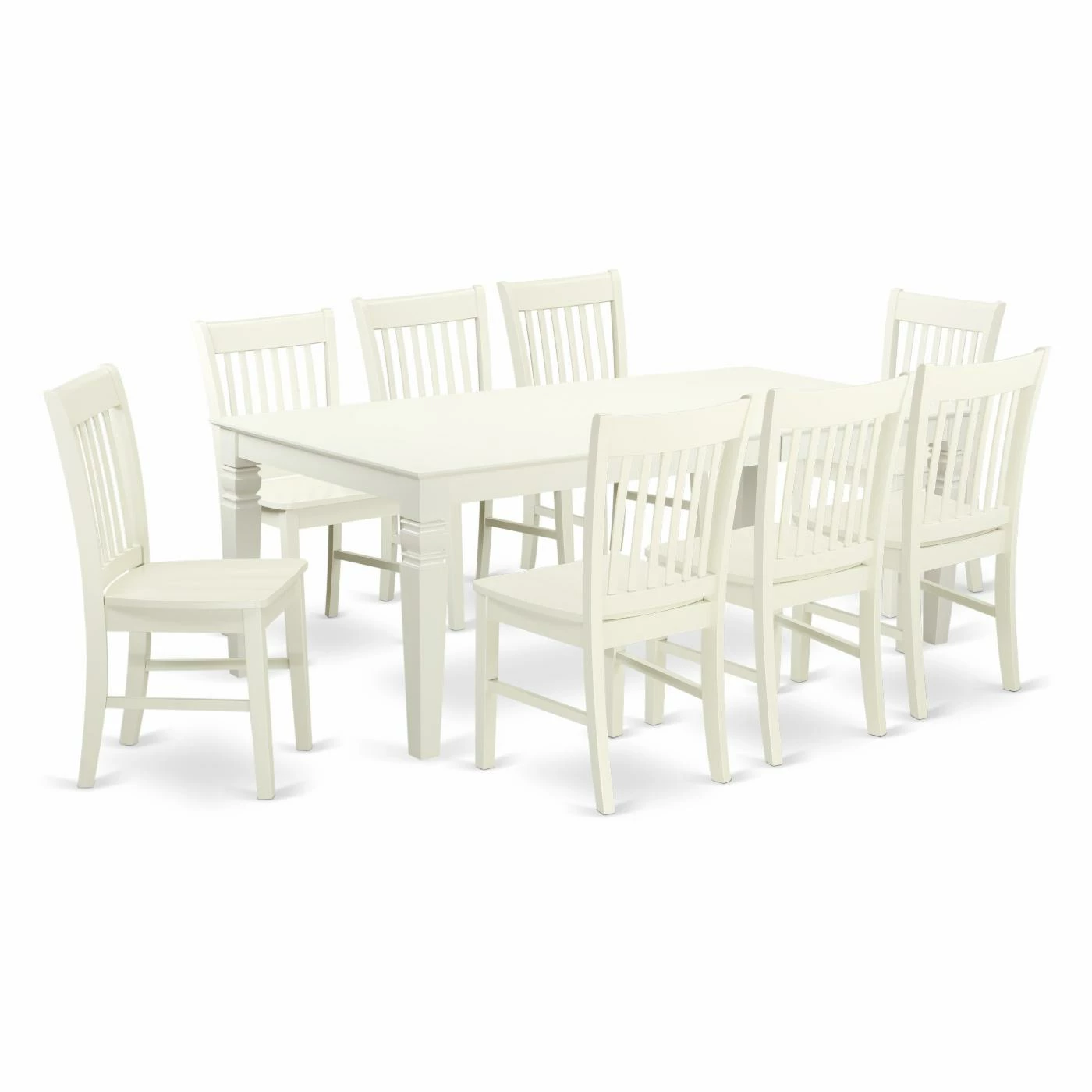 Unexpected dinner guests are no problem when you have the East West Furniture Logan LGNO9 Nine Piece Extension Dining Table Set. With its self-storing extension leaf, the carved-leg table expands to accommodate more guests in a flash. Plus, the solid hardwood dining set provides eight people a comfortable chair with a classic slatted back and ergonomically contoured seat. Finished in linen white, the set can match virtually any color palette.