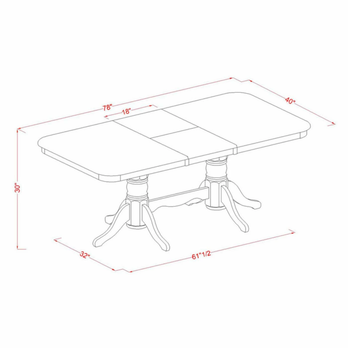 Impress your guests with the elegant, comfortable design of the East West Furniture Napoleon NAIP7 Seven Piece Extension Dining Table Set. The two-tone solid hardwood dining set includes a spacious table with a sophisticated double pedestal base. To make enough space for every diner, the tabletop expands with a self-storing extension leaf. Six ergonomically designed slat-back chairs complete the set.