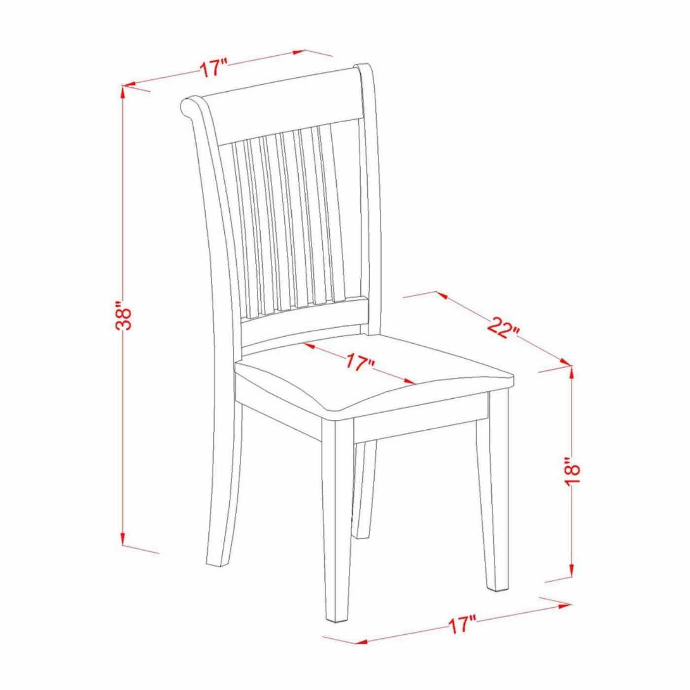 - Chair dimensions (ea.): 18L x 17.5W x 38.5H in.