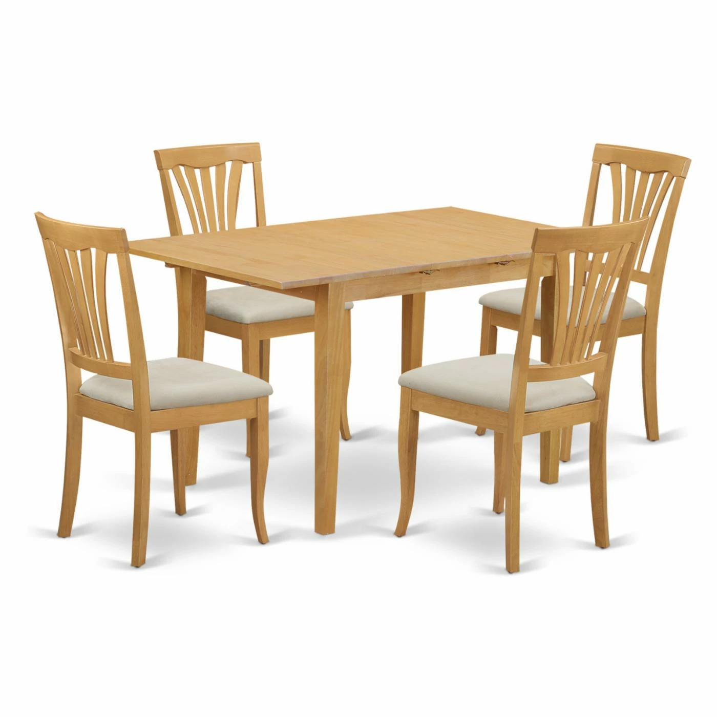 The elegantly casual East West Furniture Norfolk 5 Piece Lath Back Dining Table Set includes a table with extension leaf and four classic lath back chairs with gently curved front legs. The chairs are offered in your choice of available seat. With the leaf in place, the table can accommodate up to four people. Pieces are built of solid Asian hardwood and offered in your choice of available finish. This set is perfect for smaller dining spaces.