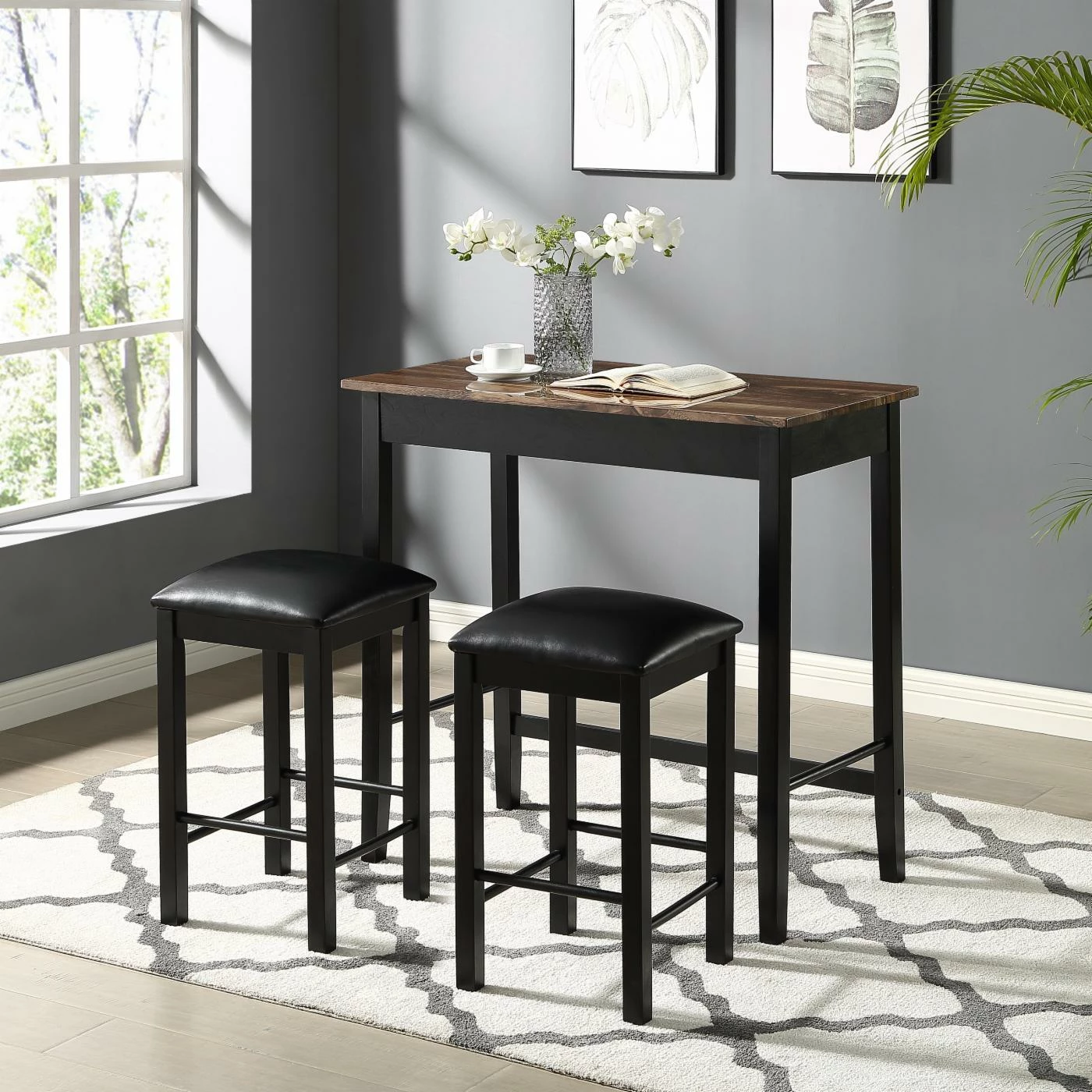 - Set includes 1 counter table and 2 bar stools