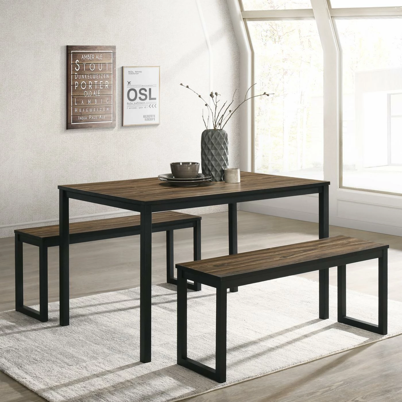 Add a minimalist allure to your dining area with the Furniture of America Ryles 3 Piece Dining Table Set that evokes a clean, industrial-adjacent look and feel. A transitional style with clean, crisp lines pairs well with the two-tone finish of each piece. Sleek black metal legs and wood grain details add an industrial touch with rustic flair to this handsome three-piece set.