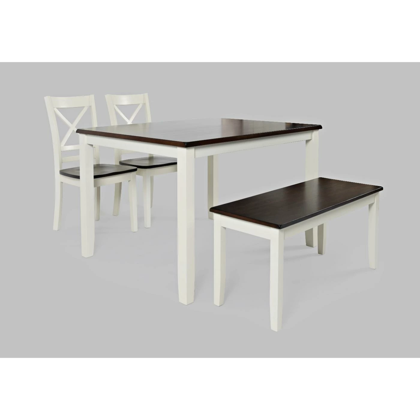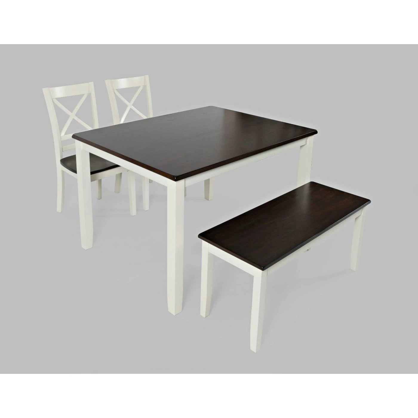 - Set Includes one dining table, one bench, and two dining chairs.