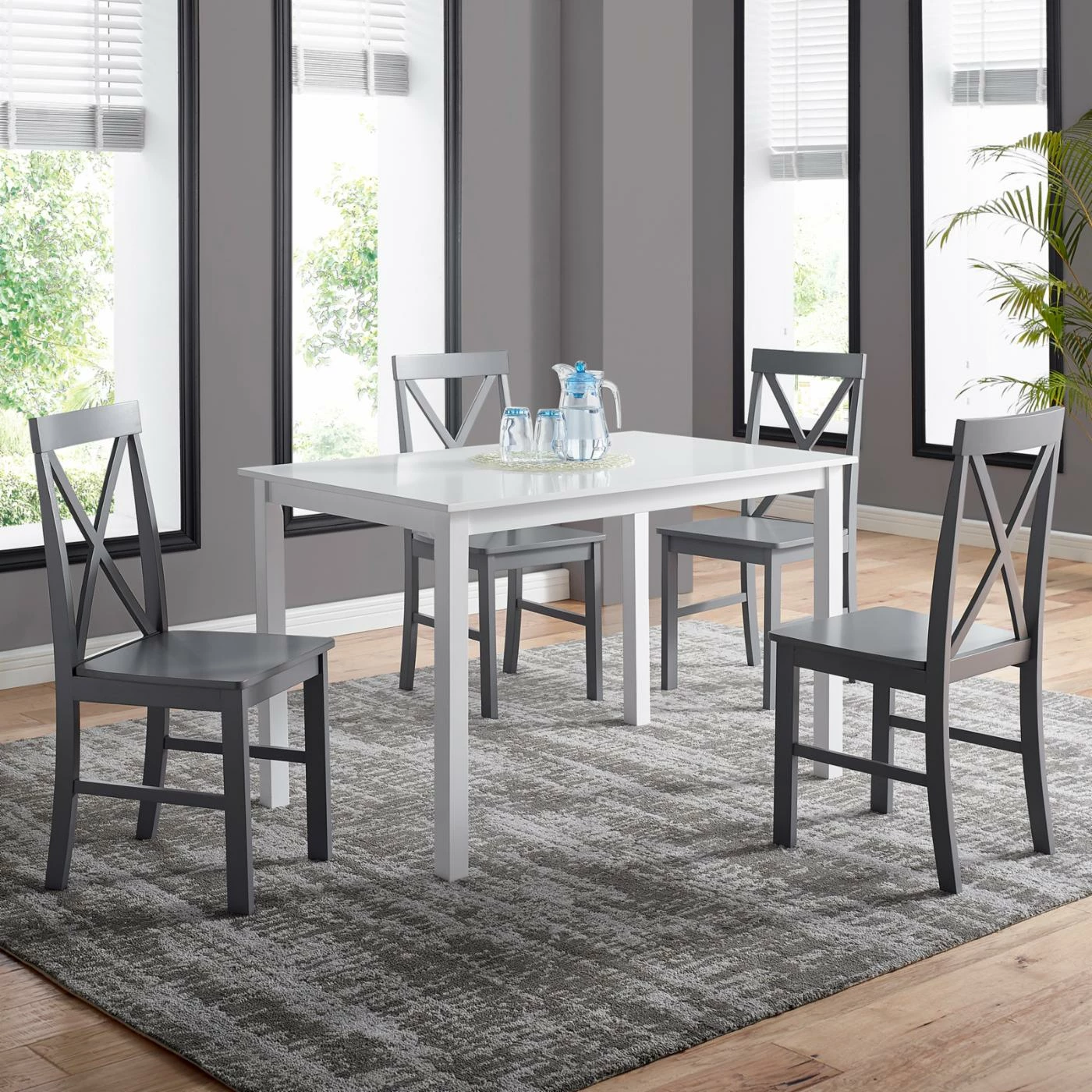 - Includes dining table and 4 chairs