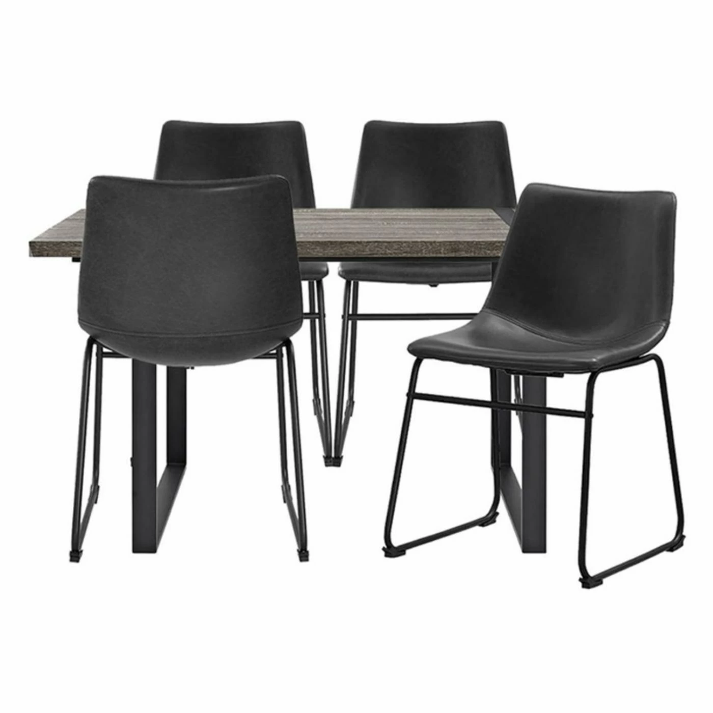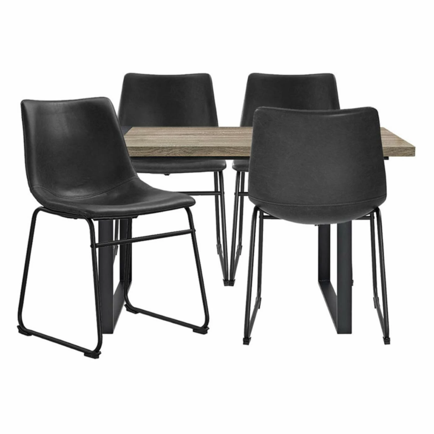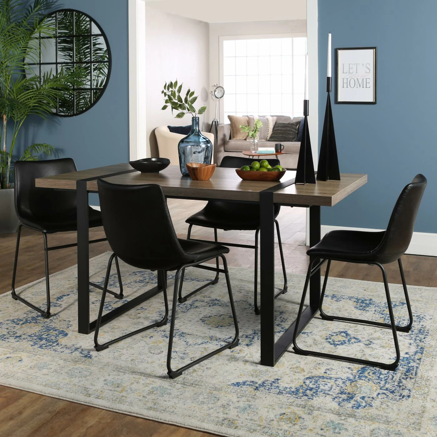 Create an intimate dinner setting with the mid-century modern Manor Park Urban Blend 5 Piece Dining Set. This contemporary set is great for this smaller spaces. The table features a sturdy metal base and a wood laminate top in your choice of available finish. The four chairs cradle you in comforting faux leather with curved sides for a modern silhouette. Assembly required.