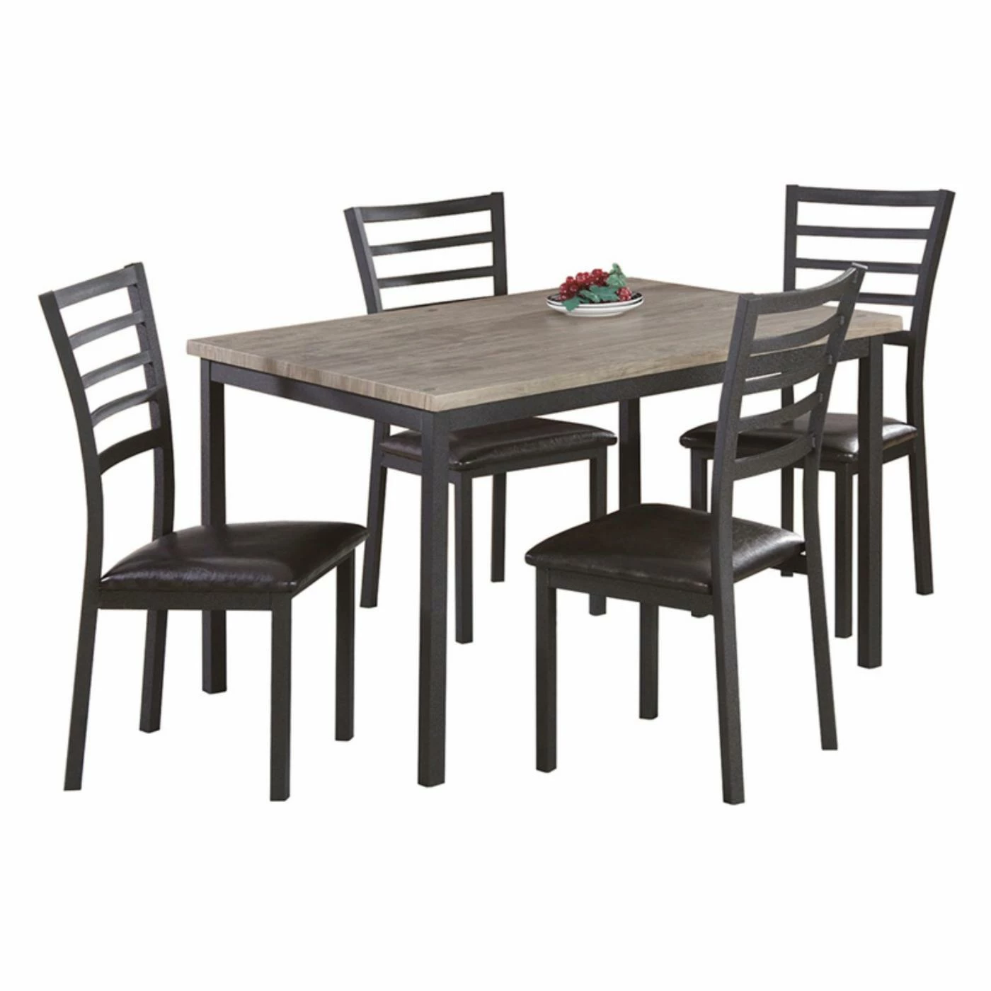 From foie gras to french fries, the Milton Greens Stars Terrassa 5 Piece Dining Table Set sets the scene for many a happy memory. Padded seats allow you to linger and enjoy engaging conversation after dinner. Veneers cloak the engineered wood tabletop. Table and chair legs alike are crafted of solid wood in a black finish. All in all, this set is sleek, modern, and versatile.