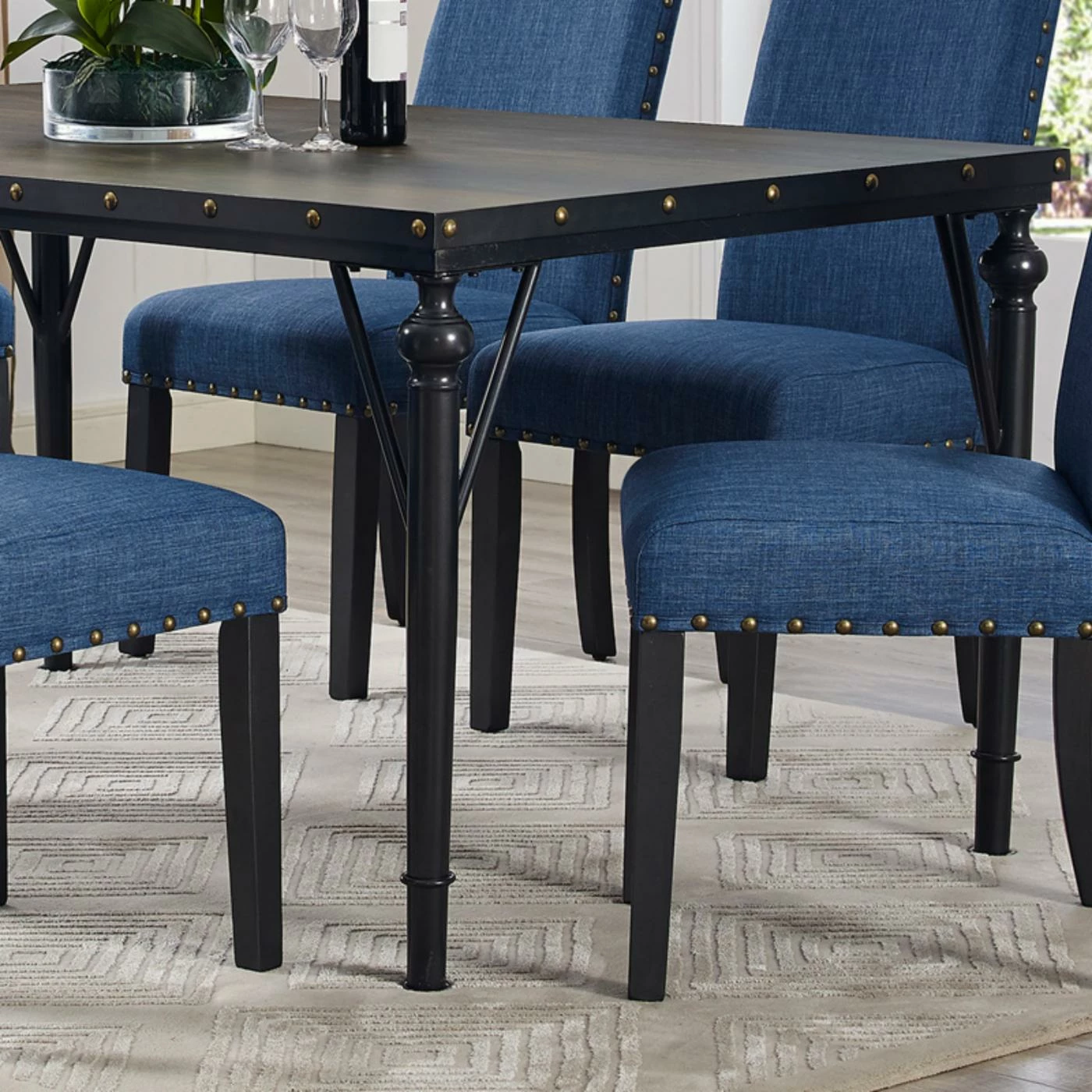 - Metal, fluted table legs