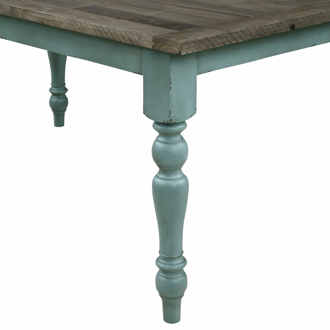 - Blend of antique blue and weathered brown finishes