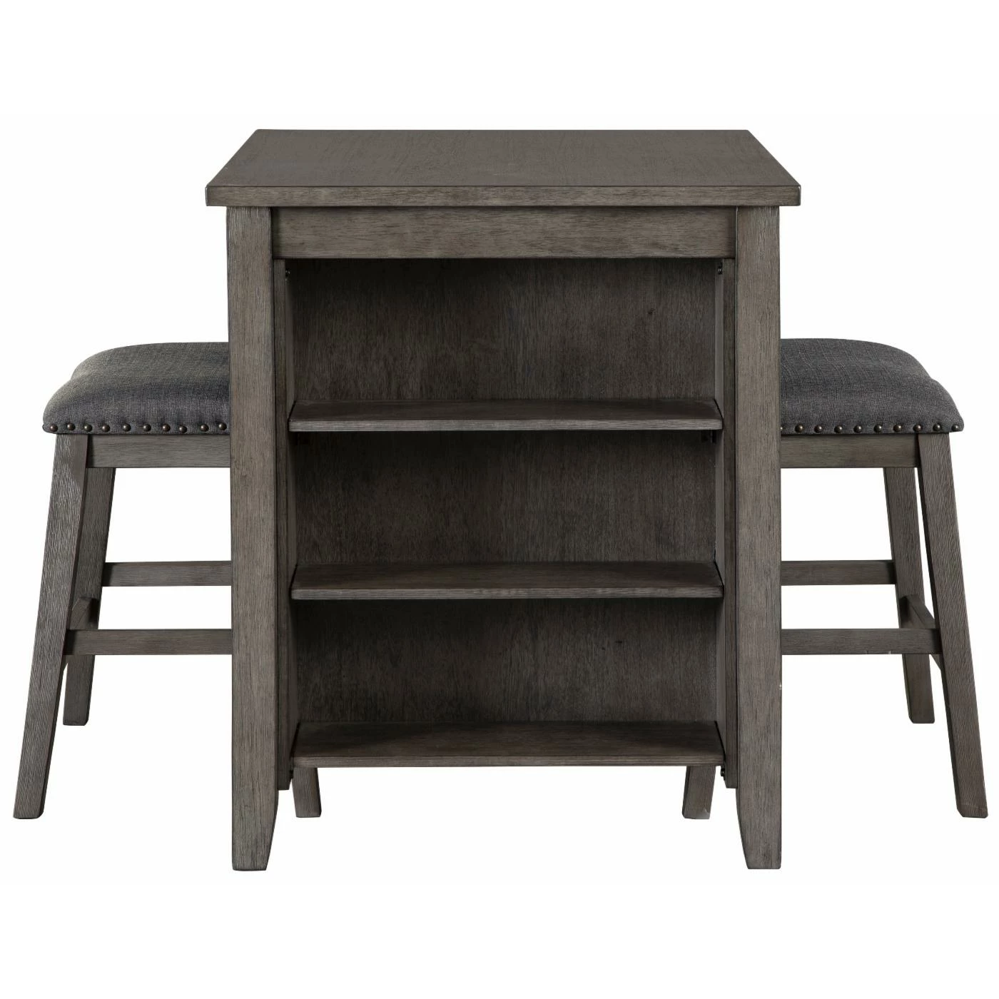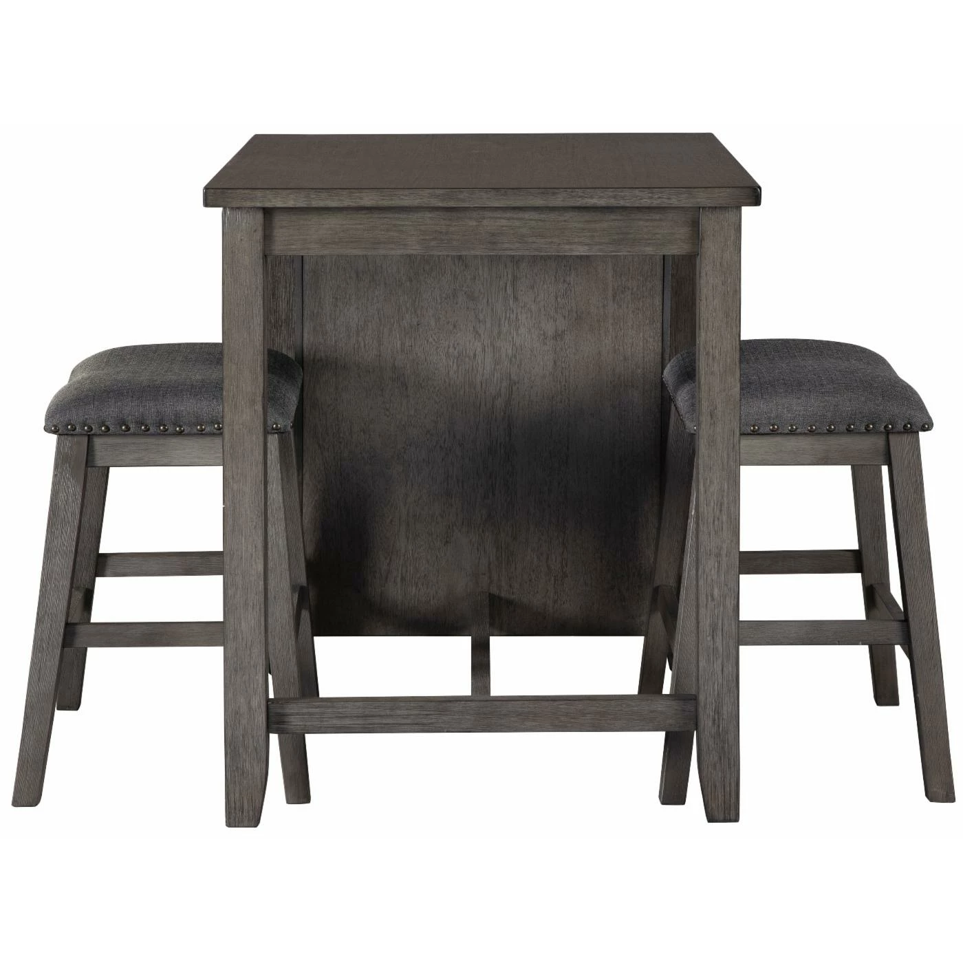 - Antiqued gray wash finish