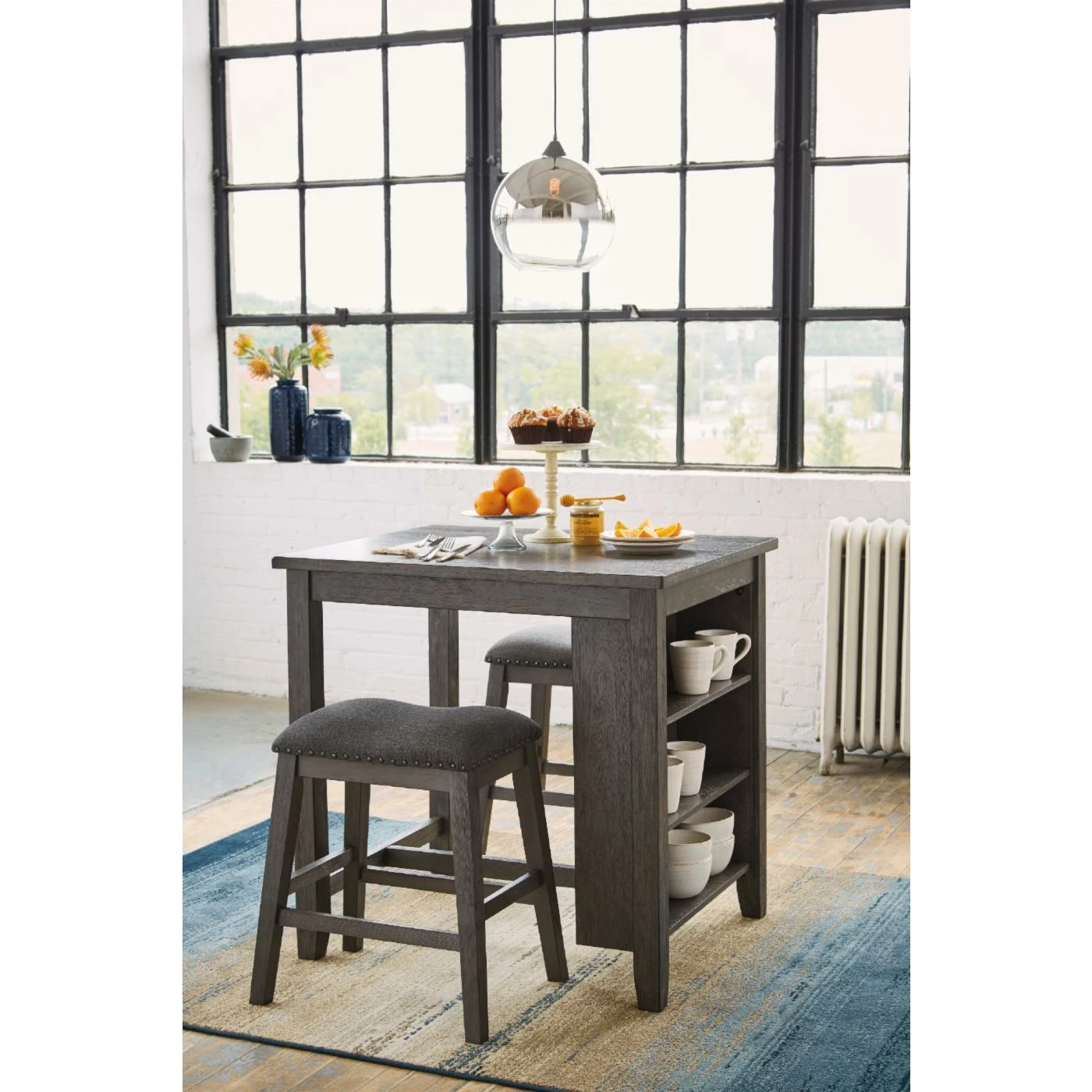 - Includes counter height table and 2 barstools