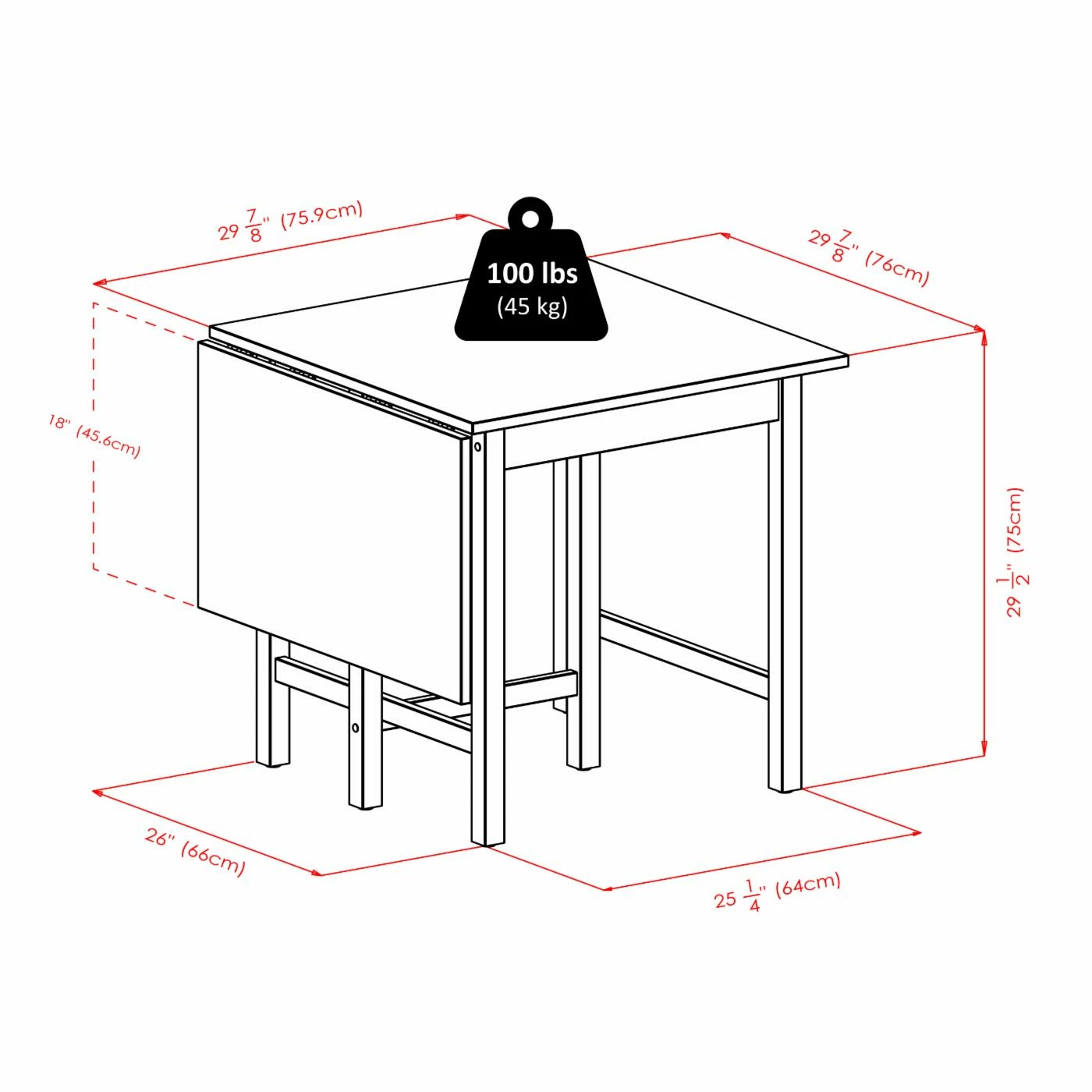 - Drop-leaf surface area: 17.95W x 29.92D in.