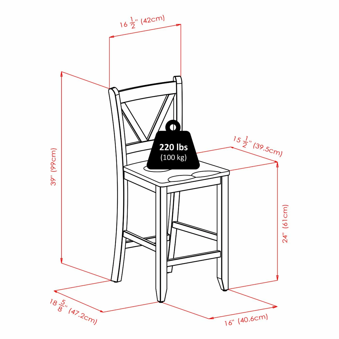 - Stool (2): 16.54W x 19.21D x 39.17H in.