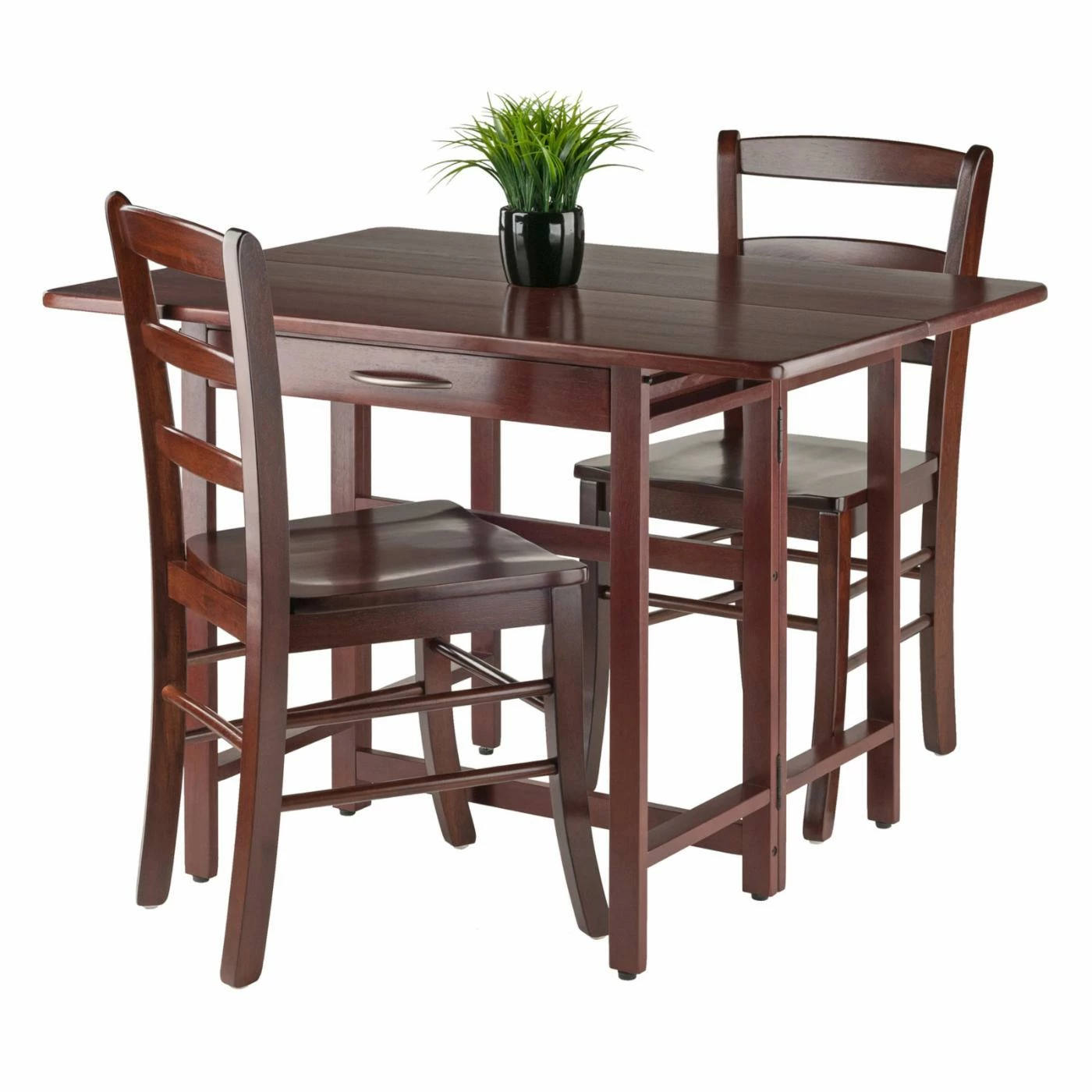 The Winsome Trading Taylor 3 Piece Drop Leaf Table Set boasts solid wood construction in a design that’s made to span the years. This set includes a drop leaf table that expands to a 30-inch width when the leaf is in place. This dining table seats four people when it’s expanded, making it a great choice for small social gatherings and meals with the family.