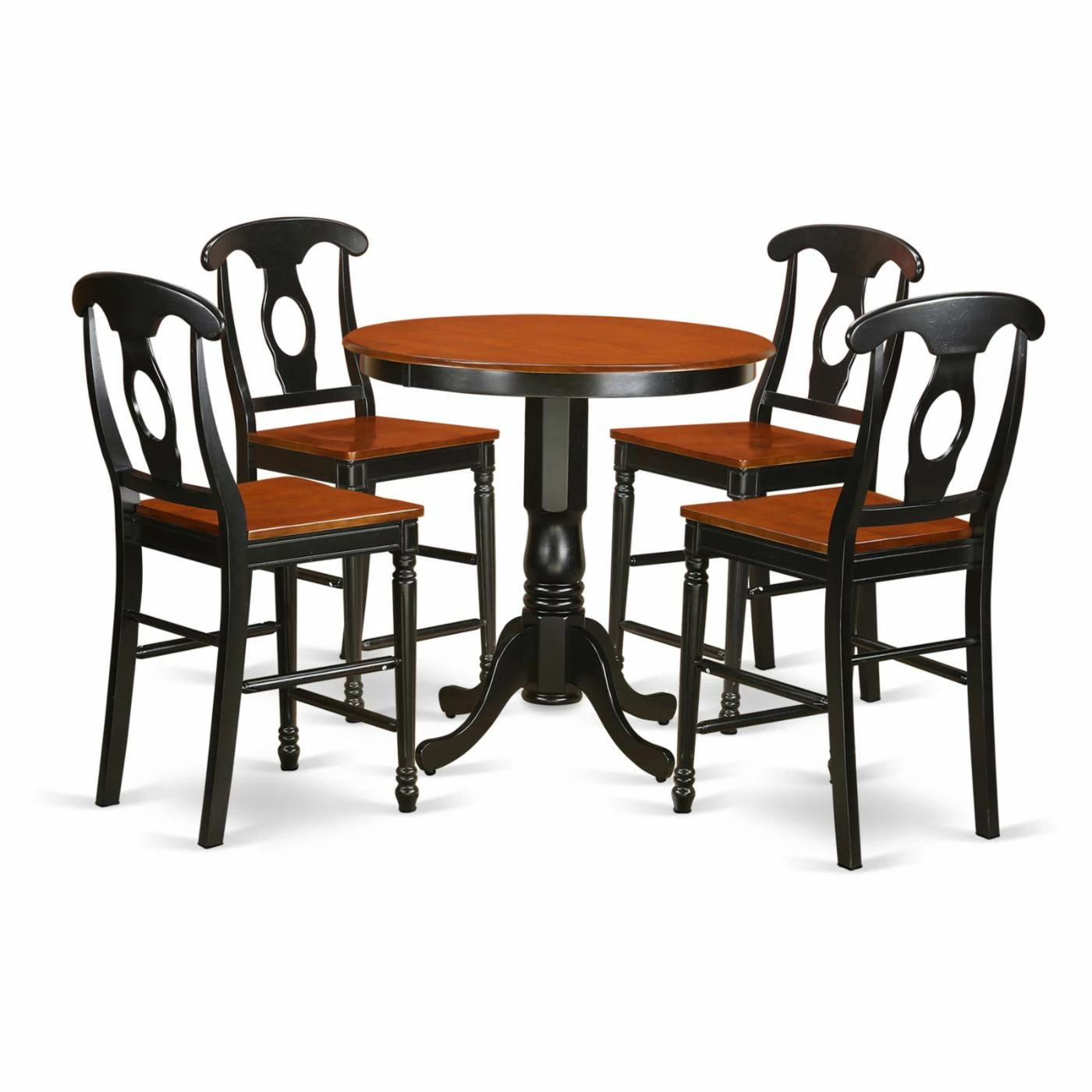 Count on the East West Furniture Jackson 5 Piece Keyhole Dining Table Set as a sleek and striking spot to gather around during meals. The table and chairs are crafted of Asian hardwood for sleek beauty and lasting use. Striking spindle details adorn the front chair legs and pedestal base. This dining table set is offered in your choice of available finish and seats up to four people.