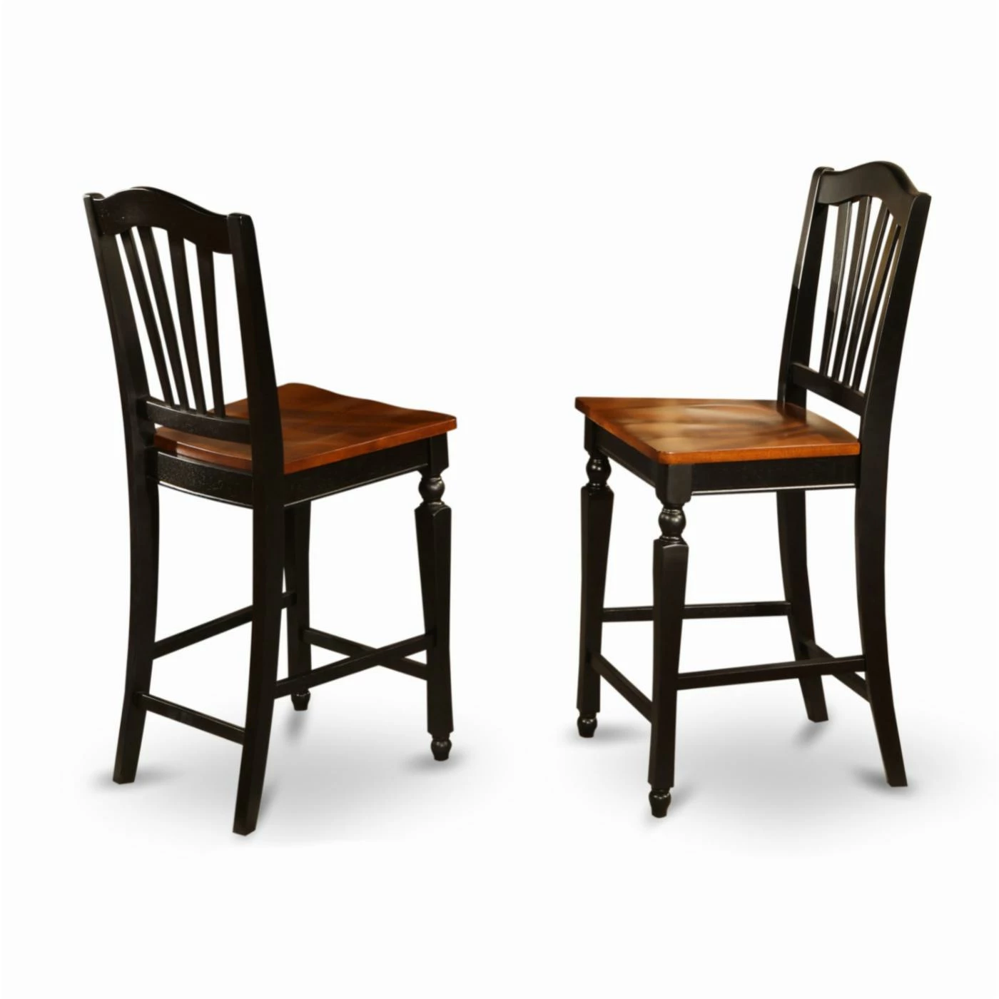 To update your multi-use dining space, the East West Furniture Sudbury 3 Piece Double Drop Leaf Dining Table Set with Slat Back Chairs comes in a counter height design. That makes it as easy to share casual meals as to walk up and help with homework. The double drop leaf tabletop allows you to save space or accommodate more guests, whichever you need at the time. The table also includes two fixed and open shelves that are built into the base. The two stools feature fan backs and turned front legs with footrest stretchers. Customize your comfort by choosing from the available seat types. This counter height dining set is built of solid rubberwood and finished in an inviting black and cherry.