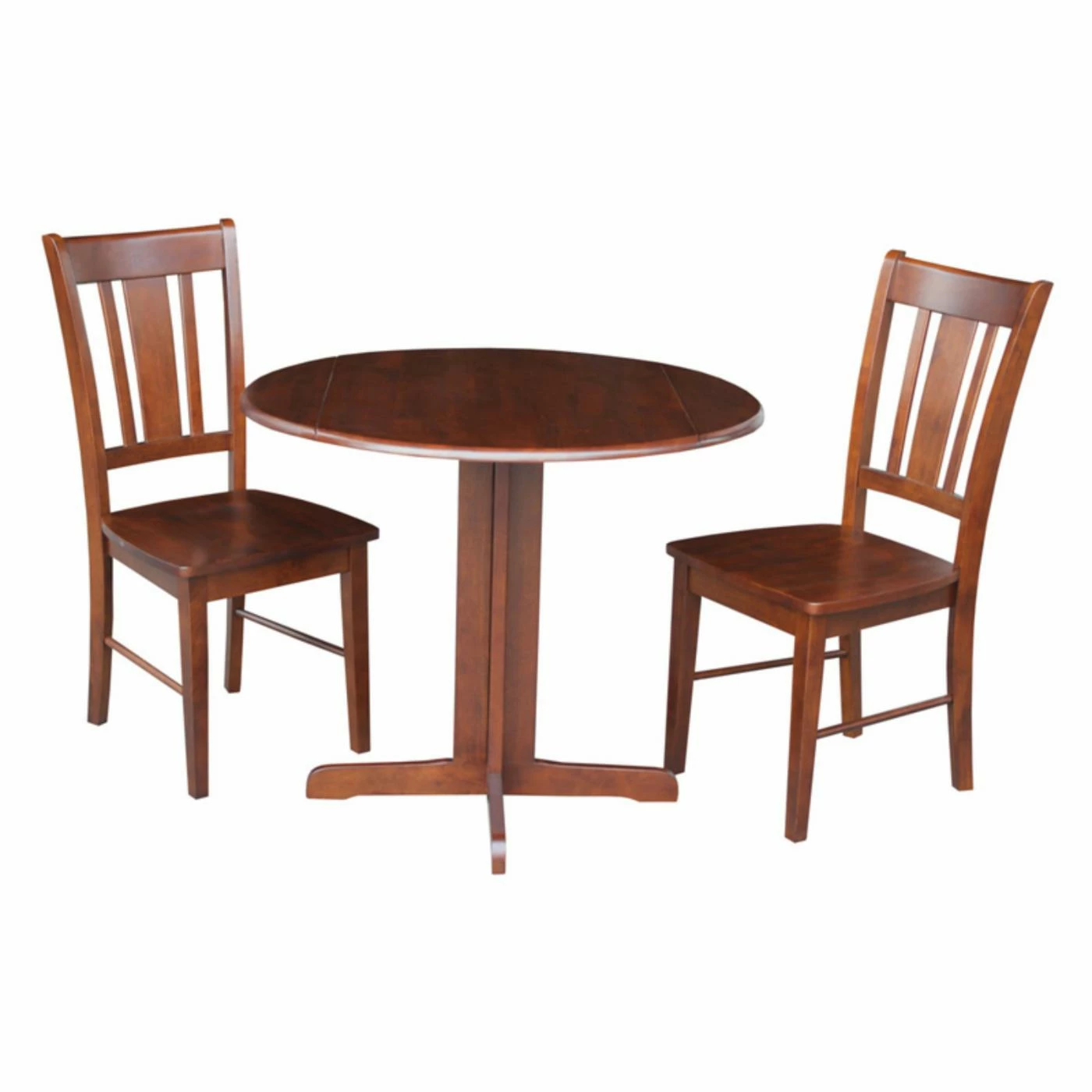 Pint-sized kitchens, itty bitty breakfast nooks, and other compact dining spaces love the International Concepts 3 Piece Dining Table Set – Espresso, and you will, too. Coming complete with a dining table and two matching chairs, this three-piece set sets a savvy scene thanks to the not-too-light, not-too-dark espresso finish.