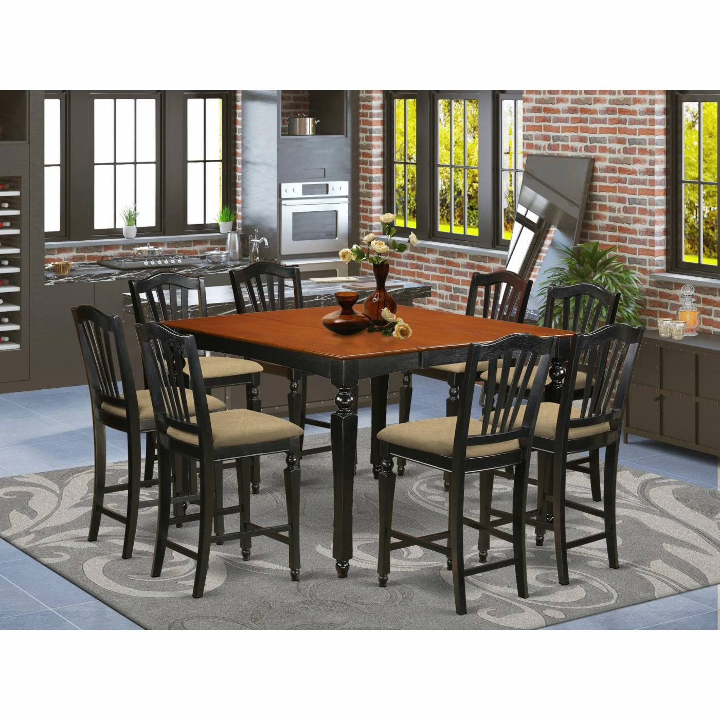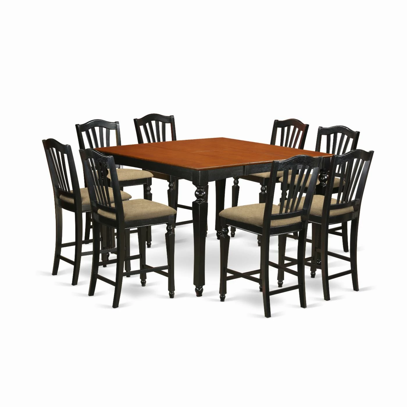 A convenient extension leaf gives you plenty of space for entertaining at the East West Furniture Chelsea 9 Piece High Splat Dining Table Set. Eight chairs give you space for guests to join you at mealtime. Strong wooden construction ensures long-lasting strength and stability. Choose optional leather or linen cushioning for the chair seats to keep you extra comfortable.