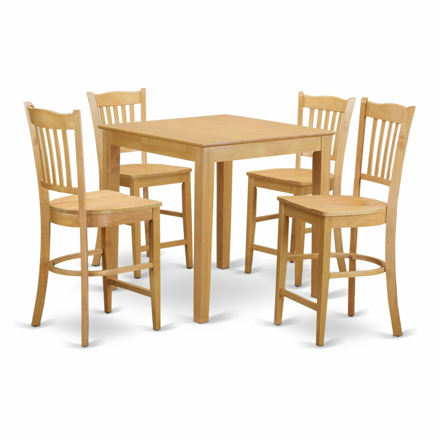 The East West Furniture Pub 5 Piece Comb Back Dining Table Set is fitting in any small home or apartment. The compact design of this four-person dining set is perfect for a small house, duplex, or apartment. The oak finish lends a traditional look, while Asian hardwood craftsmanship guarantees lasting durability. The comb-style backs of the chair offer ample back support while you sit.