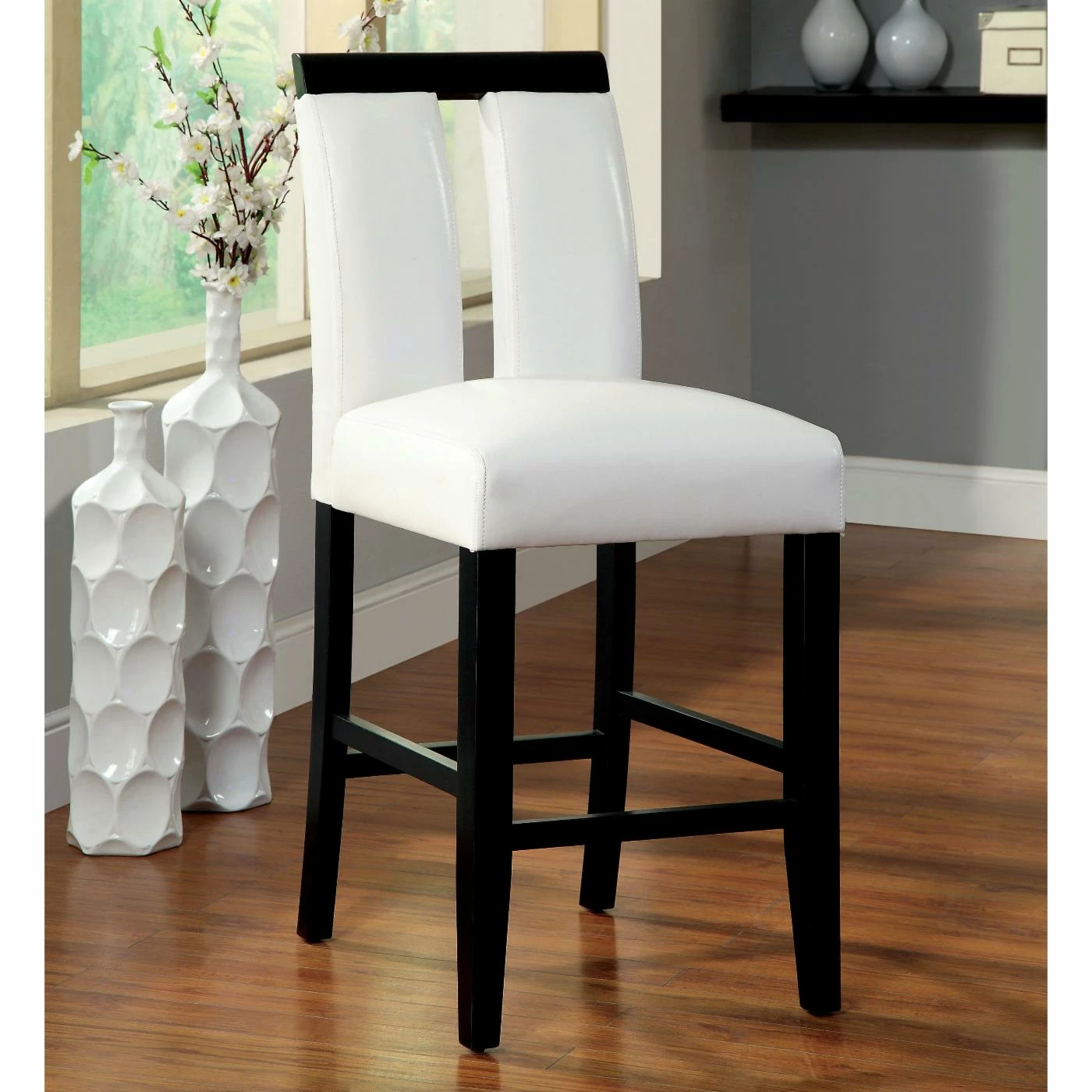 - Matching chairs with padded white leatherette upholstery