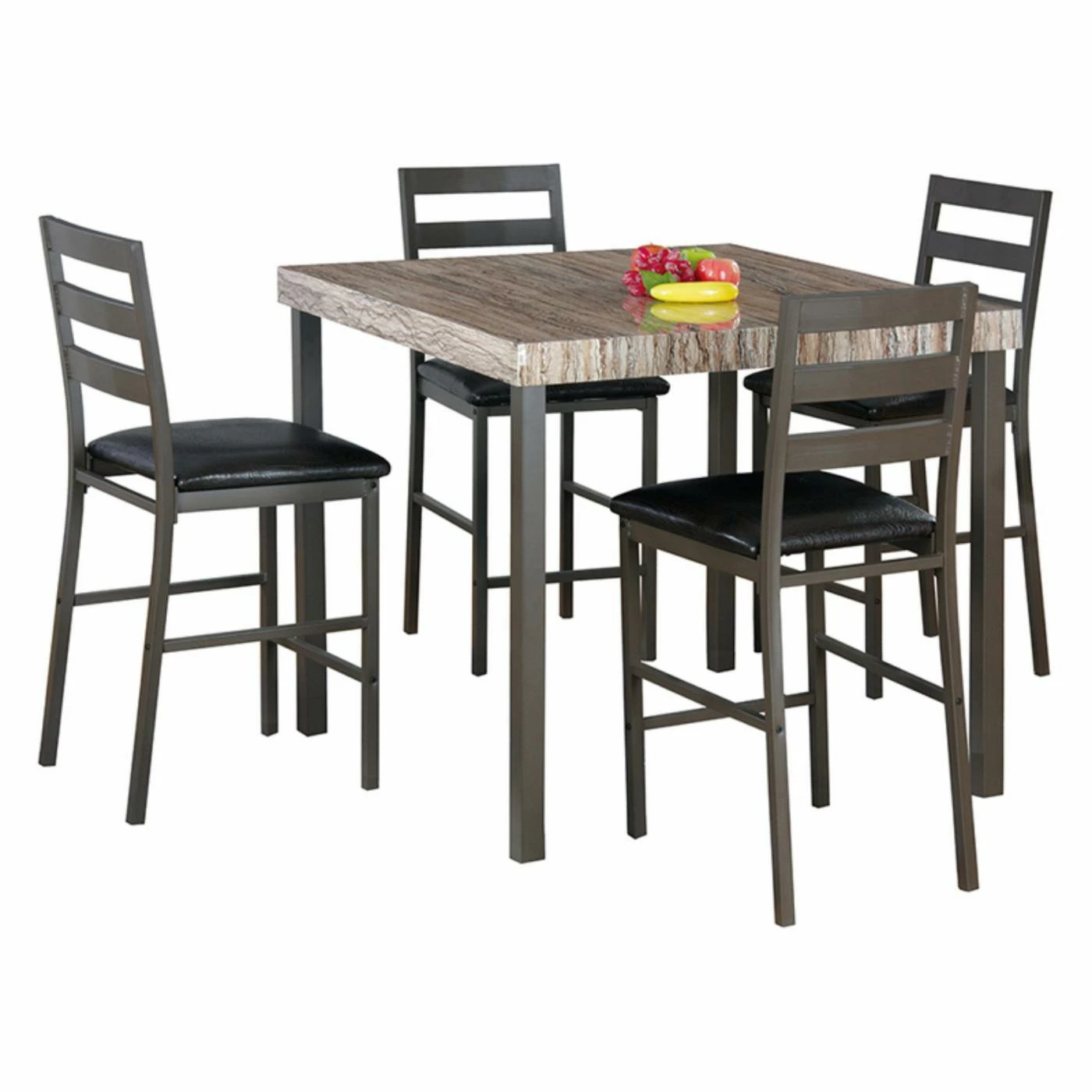 The counter-height design of the Milton Greens Stars Victoria 5 Piece Dining Table Set will lend a casual air to your space, but the robust design of this set is something that we take seriously. This easy-to-love set starts with chair and table frames of square metal tubing that’s finished in a versatile shade of gray powder coat. The seats are all cushioned with thick layers of foam under supple vinyl upholstery. The wide tabletop is covered with a durable laminate that shows off the look of figured marble. This set is designed for strength, with regular, daily use in mind.