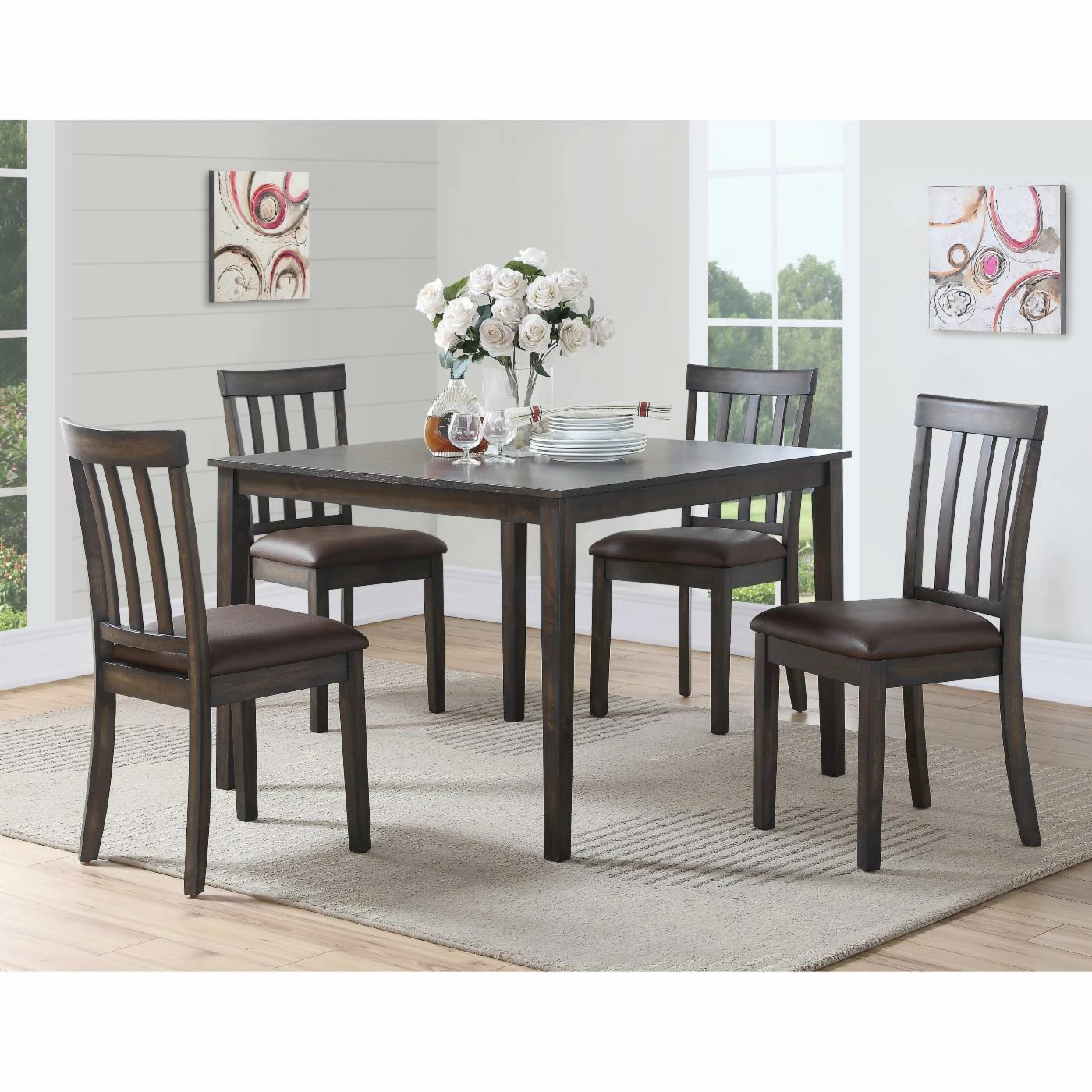 Create a contemporary farmhouse look for your kitchen or dining room with the Steve Silver Co. Melanie 5 Piece Dining Table Set. This dining set features a square-shaped dining table constructed from wood solids and veneers. Each of the accompanying schoolhouse chairs features an upholstered seat and slightly curved back to enhance comfort. The set’s warm espresso finish promises to add an upscale touch to dΓ©cor while promoting pairing ease.