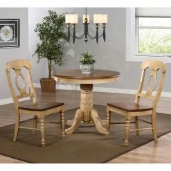 The Sunset Trading Brookdale 3 Piece Round Cafe Dining Table Set with Napoleon Chairs is designed to make your favorite conversation space cozy. This is a three-piece set that includes a round cafe table and two chairs. It’s filled with casual country charm and is built to last. The round tabletop makes conversations easy and the two chairs are comfortable. This cafe table and chair set is a great addition to your breakfast nook.