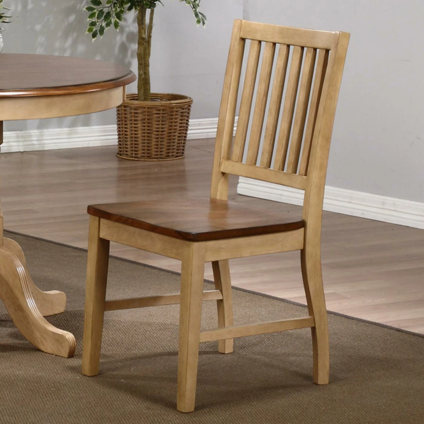 The brookhaven seven-piece dining set is built sturdy enough to withstand everyday use so it will be in your family for years. All pieces in this classic dining room set are crafted of eco-friendly Malaysian oak and have a distinctive two-tone finish. The frames are finished in wheat with contrasting pecan tabletop and seats. This set includes the table, leaf, and six slat back chairs.